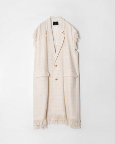 ・スリーブレスのロングジャケットの形で端正でありながらも程よく崩した印象のデザインに。