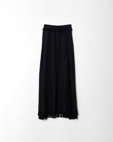 ・ウエスト、スリット、裾は手作業でシームを解いたフリンジとなっており、風や動作で揺れ動くことで優美な雰囲気を放つと共にリラックスと力を抜いた印象となっています。
