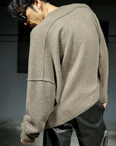 ・シンプルなニットを脱構築的にデザインして、メリハリの効いたアシンメトリーなフォルムにした、INSCRIREらしい一味違うアイテム。