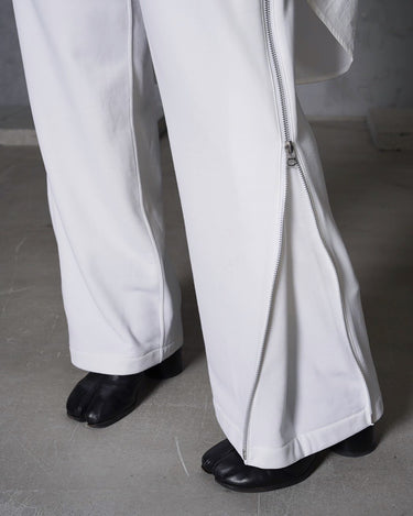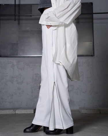 ・洗練されたストレートシルエットをベースに、両サイドのファスナーでアレンジを楽しめる遊び心溢れる一本。