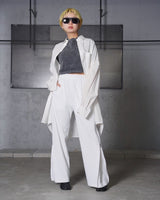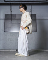 ・08sircusの絶妙なパターンテクニックにより、カジュアルにもドレッシーにも対応できる汎用性の高いシルエットとなっています。