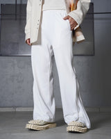 Fine poly×organic cotton pile side zip pants