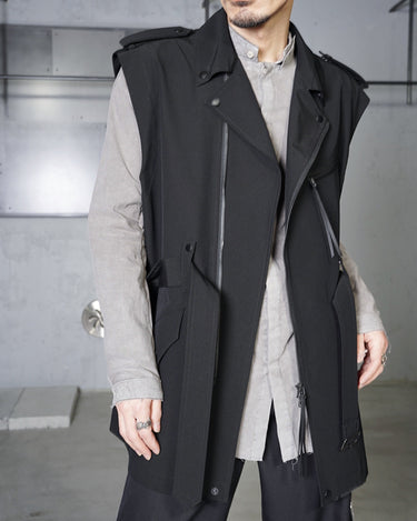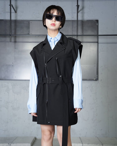 ・袖はドット釦で脱着が可能。袖を取り外し、ベストとしてレイヤードにスタイリングすることができ、幅広いコーディネートを楽しめます。