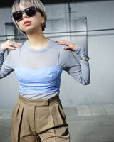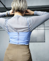 ・バックのジップで着脱ができて、ストラップで高さを調整できるため、様々なトップスとのレイヤードを楽しんでいただけます。