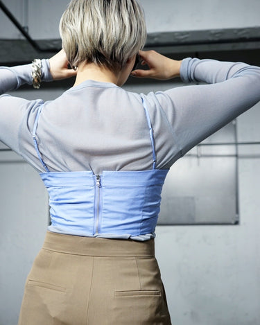・上品なコットンブロード素材で作り上げたありそうでなかったビスチェで、クリーンな顔つきとなっています。