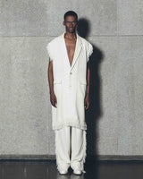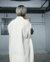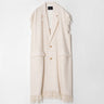 ・スリーブレスのロングジャケットの形で端正でありながらも程よく崩した印象のデザインに。