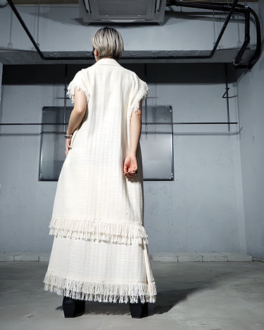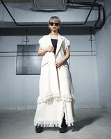・共生地の「Summer tweed long slit fringe skirt」とセットアップで着ていただけます。