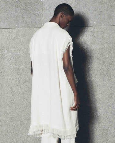 ・袖口と裾は手作業でシームを解いたフリンジとなっており、風や動作で揺れ動くことで優美な雰囲気を放つと共にリラックスと力を抜いた印象となっています。