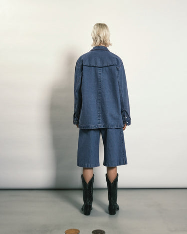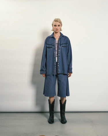 ・ヘムはストレートにすることでデニムジャケットのような印象を与え、シャツとジャケットどちらの感覚でも着ることができます。