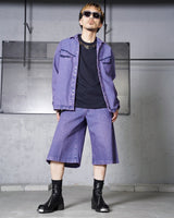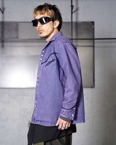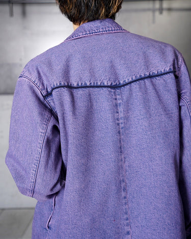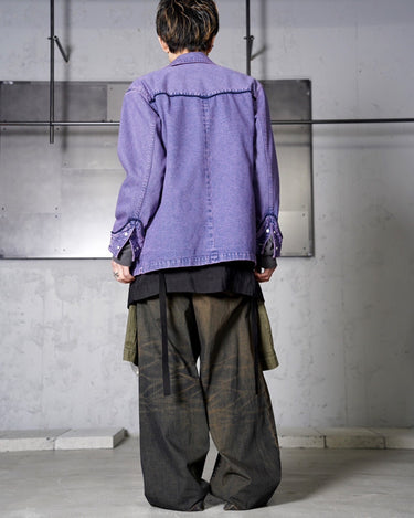 ・色落ちしたインディゴデニムの上にパープルでオーバーダイを施すことで、鮮やかで奥行きのある色味を実現。