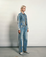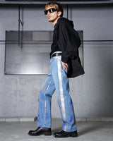 ・膝にダメージを加えた大胆でハードな仕上がりながらも、煌びやかなストーンやスタッズを無数に散りばめた、ありそうでなかったTANAKAらしいデザイン。
