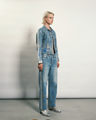 ・今シーズンはメタリックな箔プリントやペイントを無作為に施しており、こなれた心地よさを感じさせながらもエッジの効いたデザインとなっています。