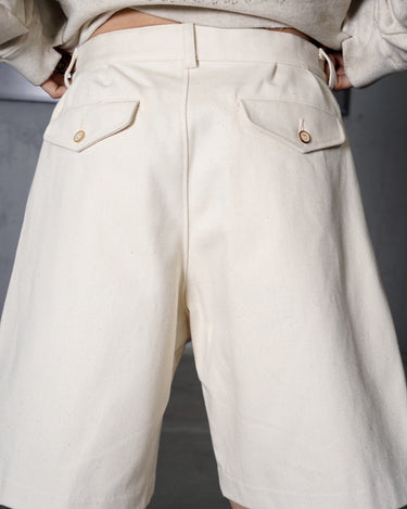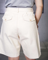 ・ショーツでありながら2タックを施した腰周りの造りにより、スラックスのような端正な仕立てと品格を実現。