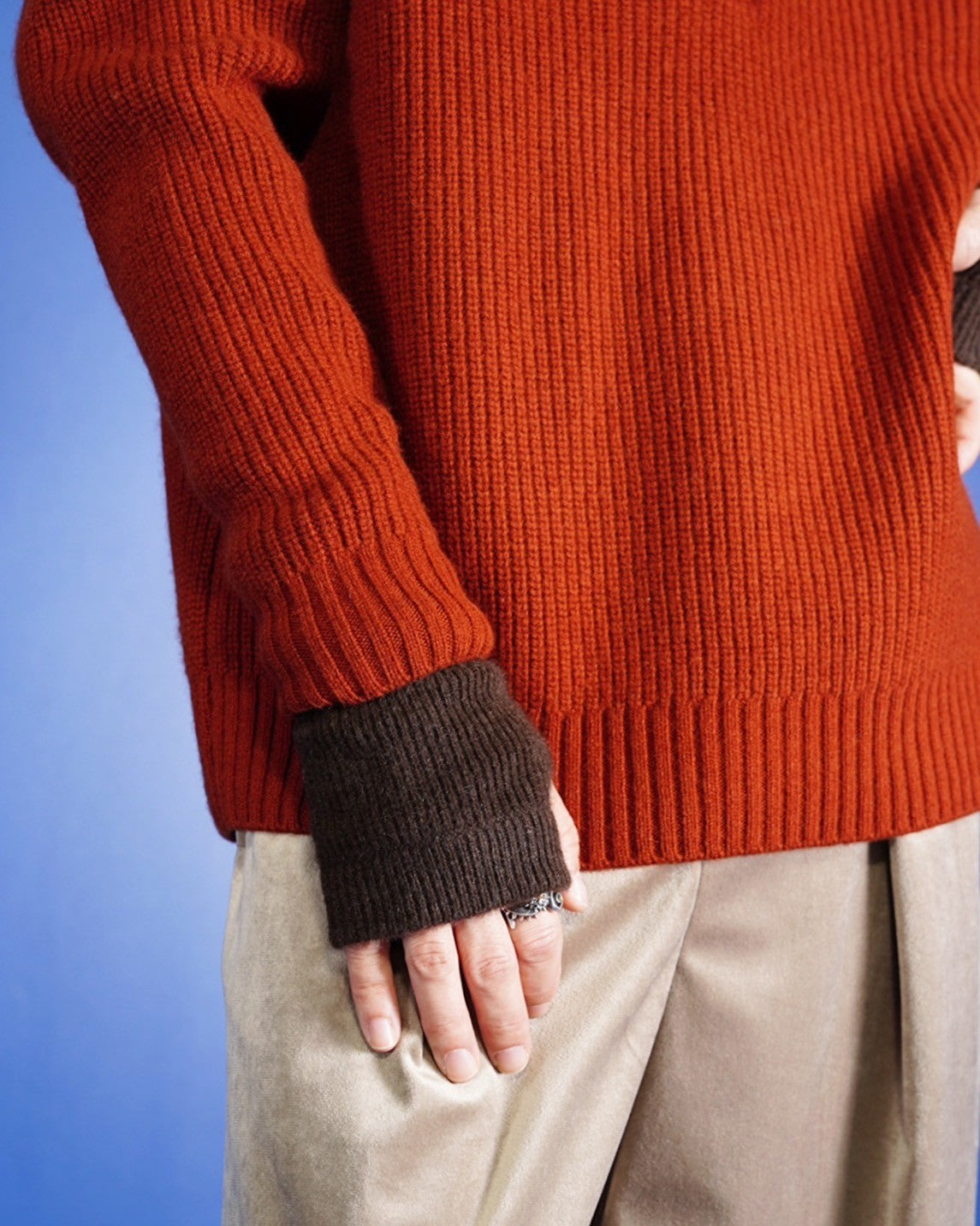 ・編地は9ゲージの天竺編みで、ヤクの質感をフルに活かすように、ふんわりと柔らかな質感となっています。