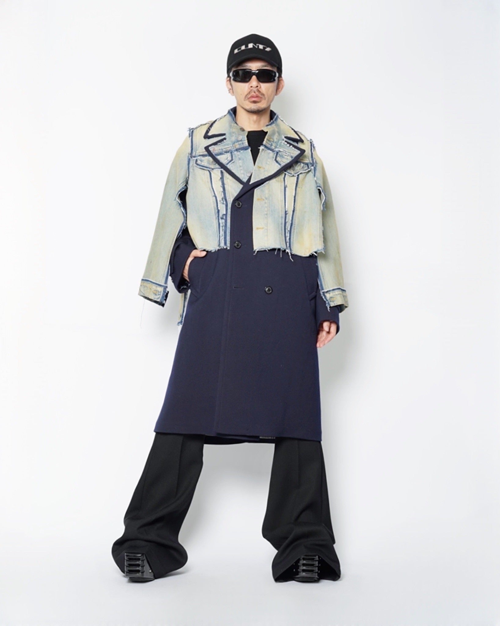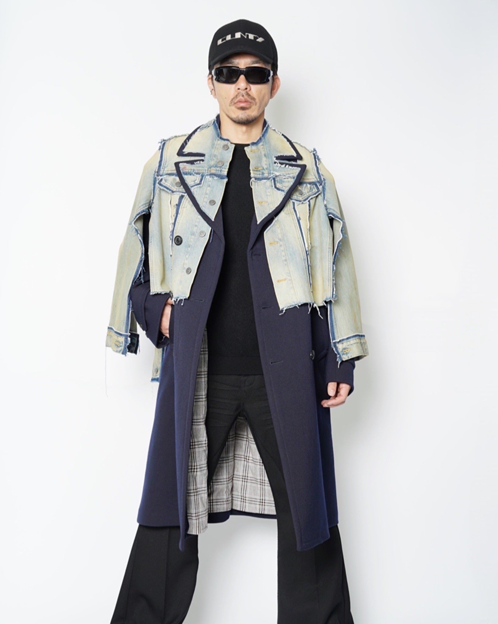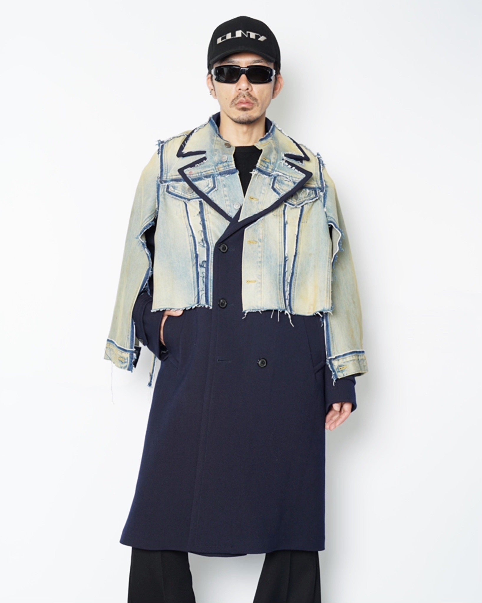 上部にデニムジャケットを