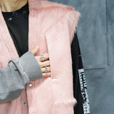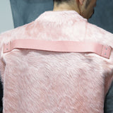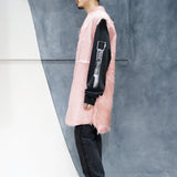 ピンクのハラコ素材で作り上げた、