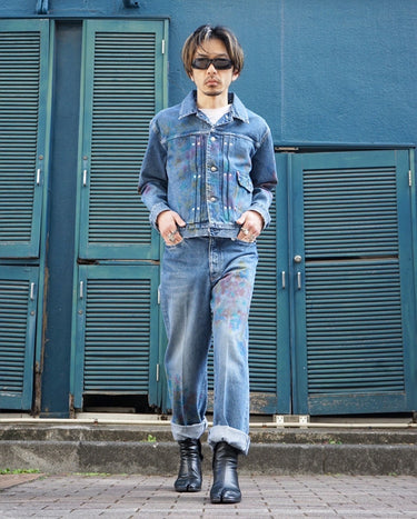 ・袖と着丈をやや長めにして肩と身頃を程よくコンパクトにすることで、ビンテージのデニムジャケットの意匠のスタイリングへの落とし込みにくさを美しく解消しています。