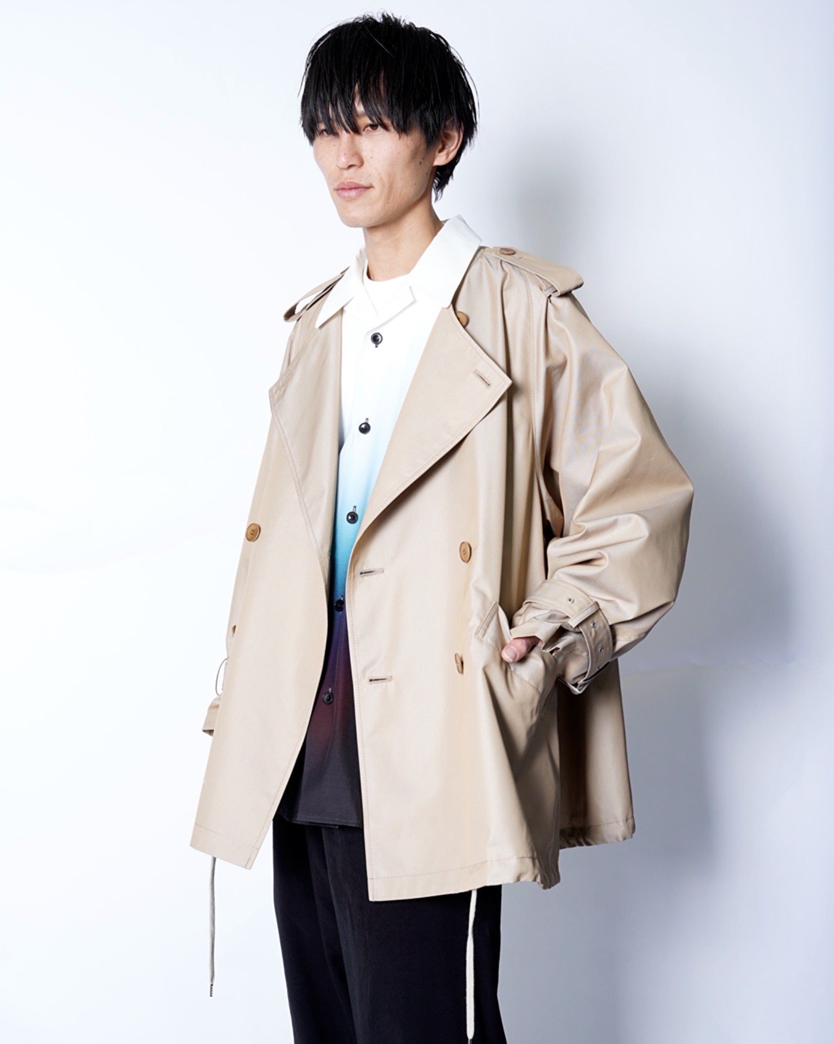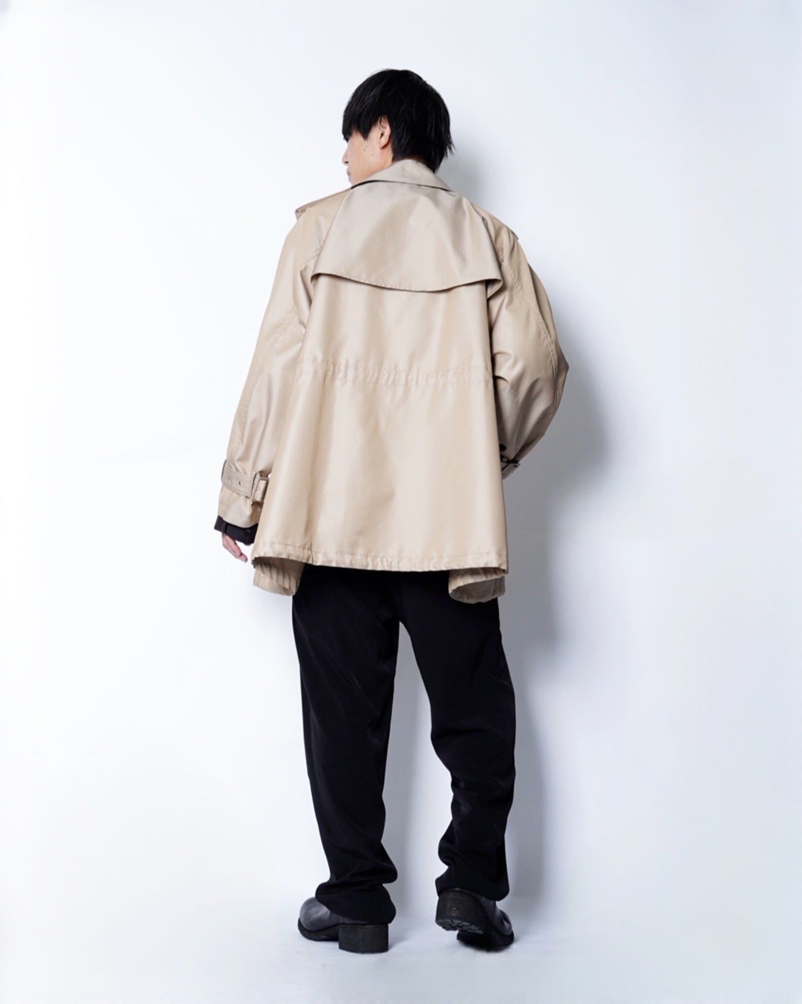 ・カジュアルにざっくりと羽織って様になるシルエットながら、収まりの良いアウトラインで端整な仕上がりに。