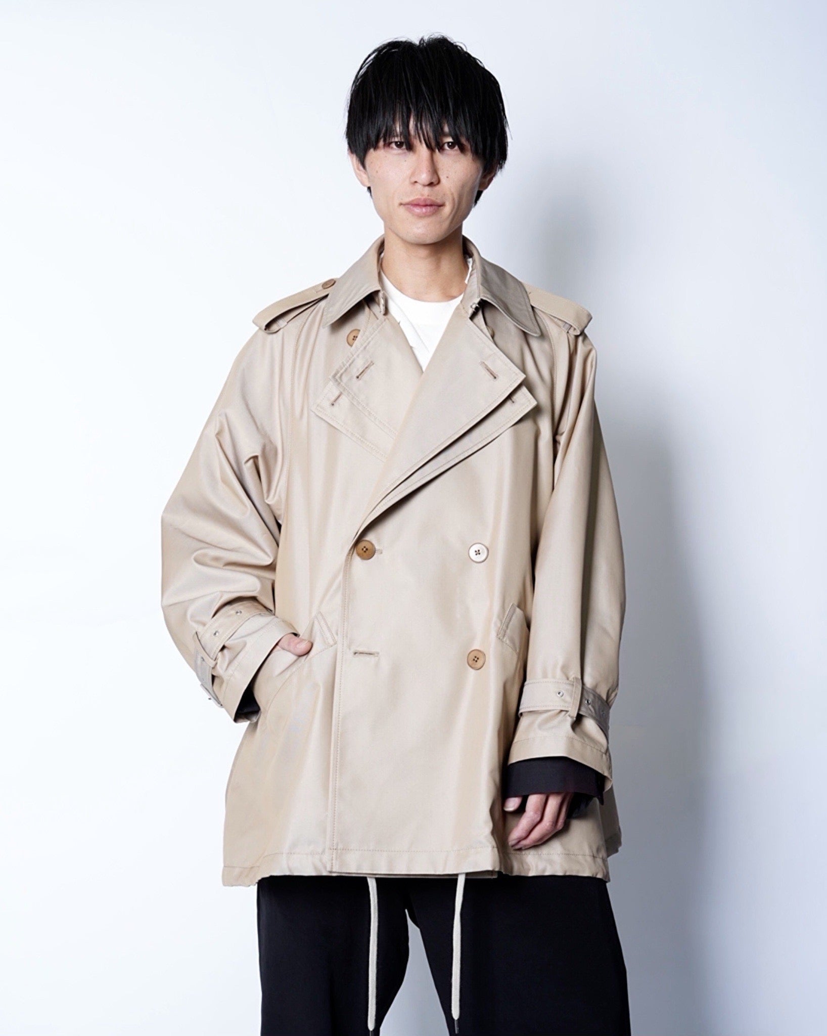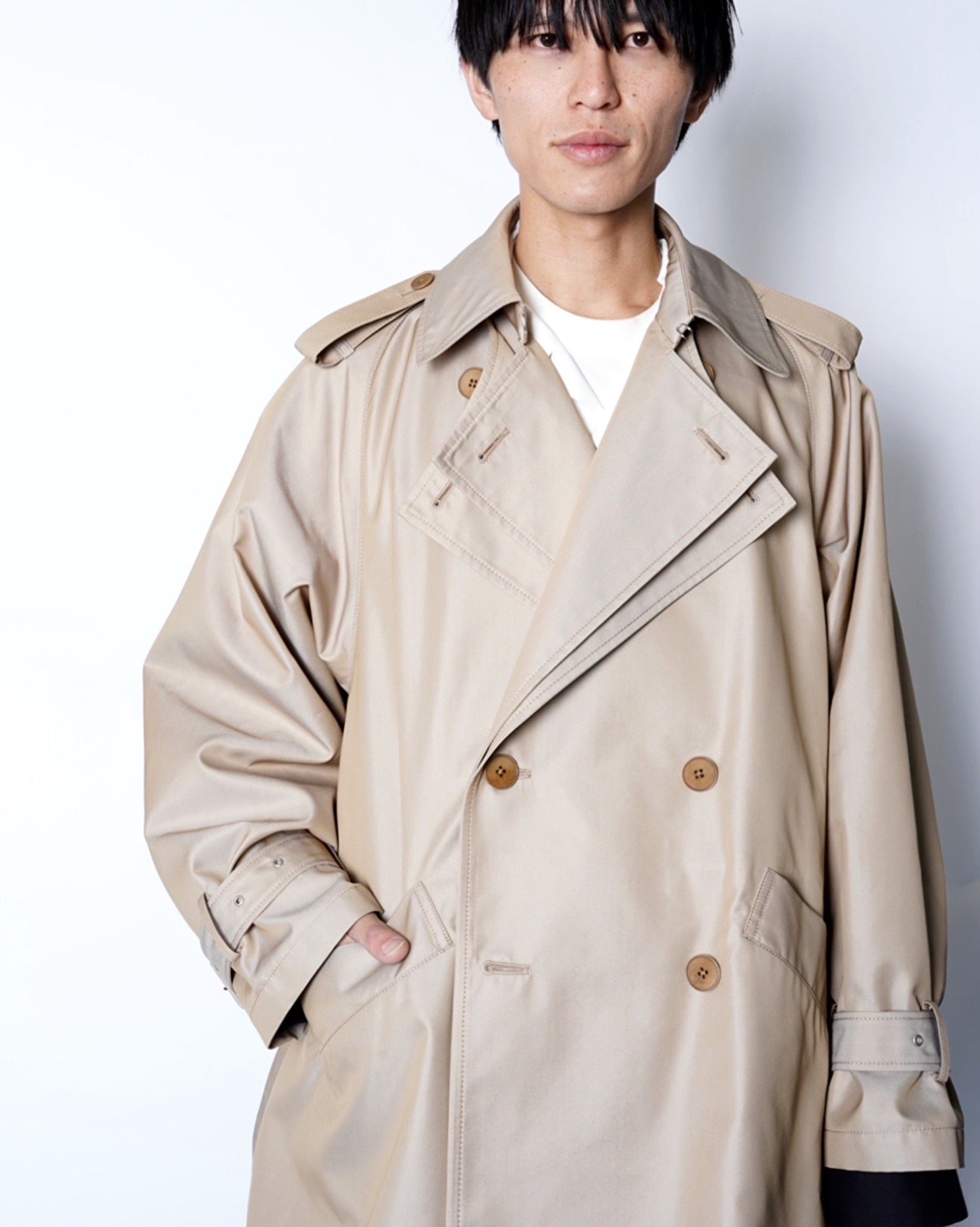 ・コレクションの中でもひときわ存在感を放つ、ミッド丈のトレンチコート。
