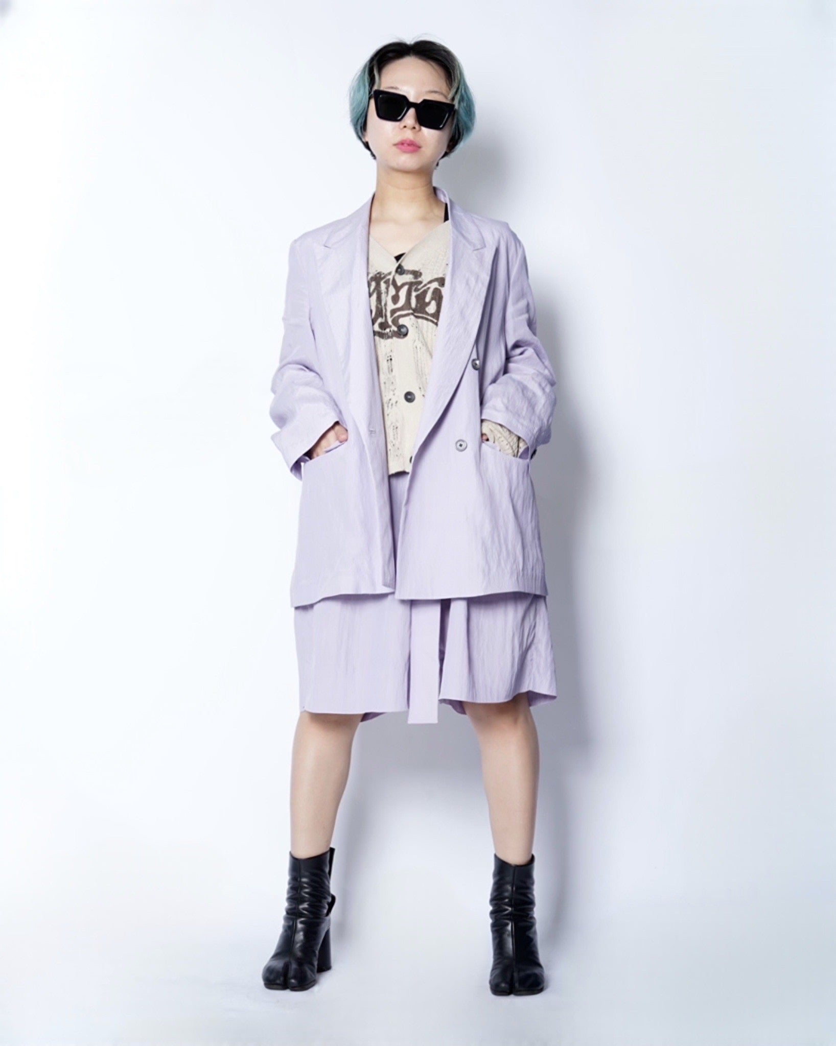 ・かっちりしたジャケットをラフに仕立てることで抜け感を加えている。