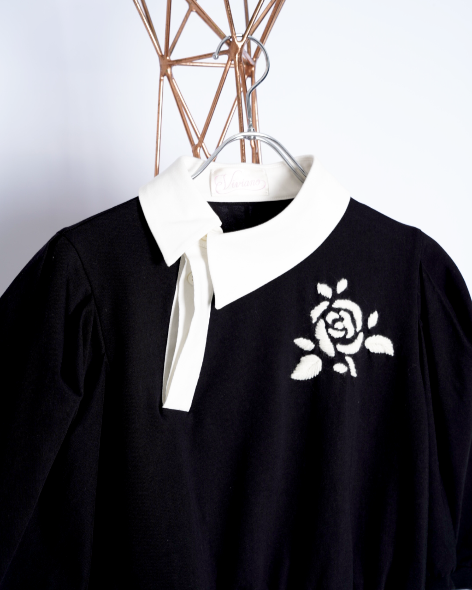 ・胸のハンドエンブロイダリーも特徴で、温かみを感じられるアクセントになっています。