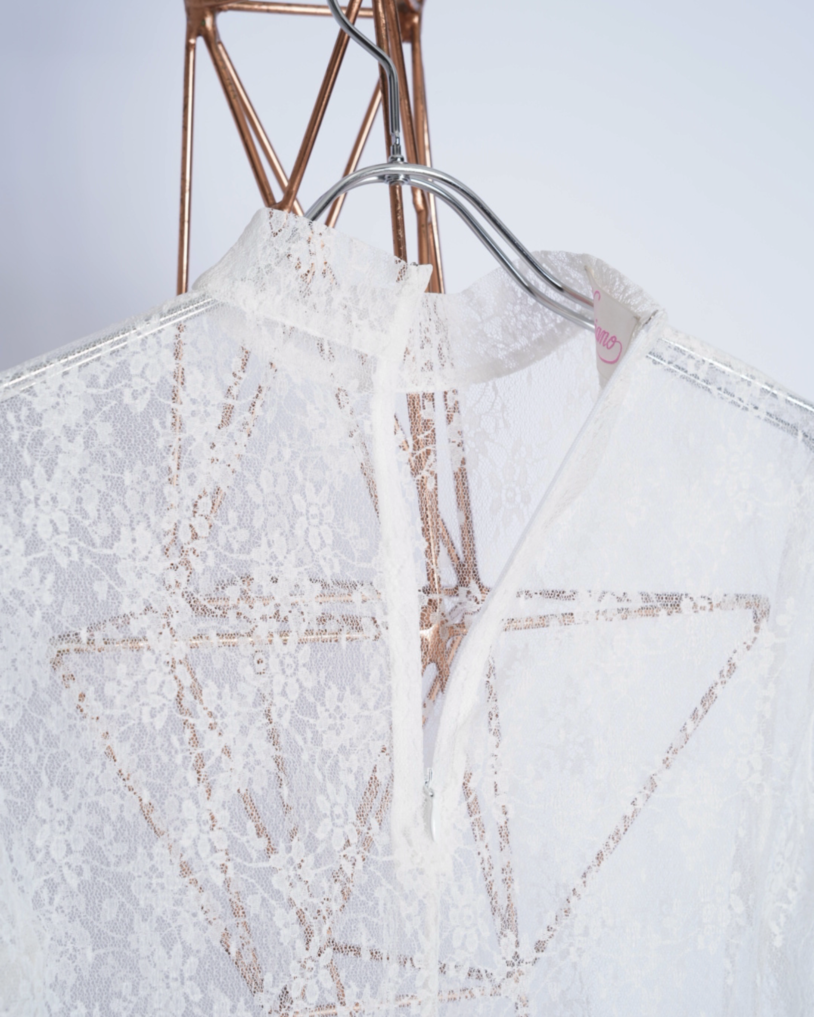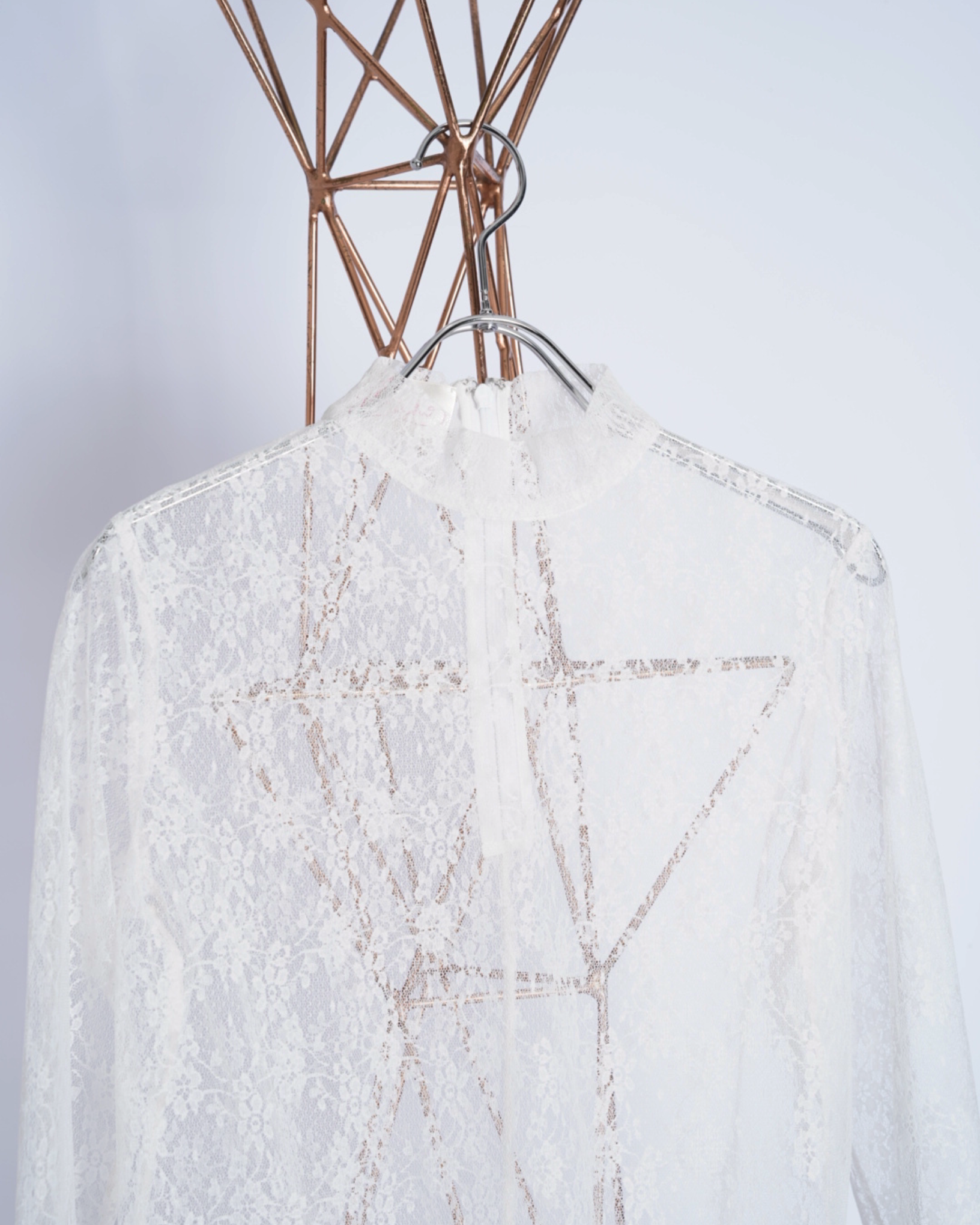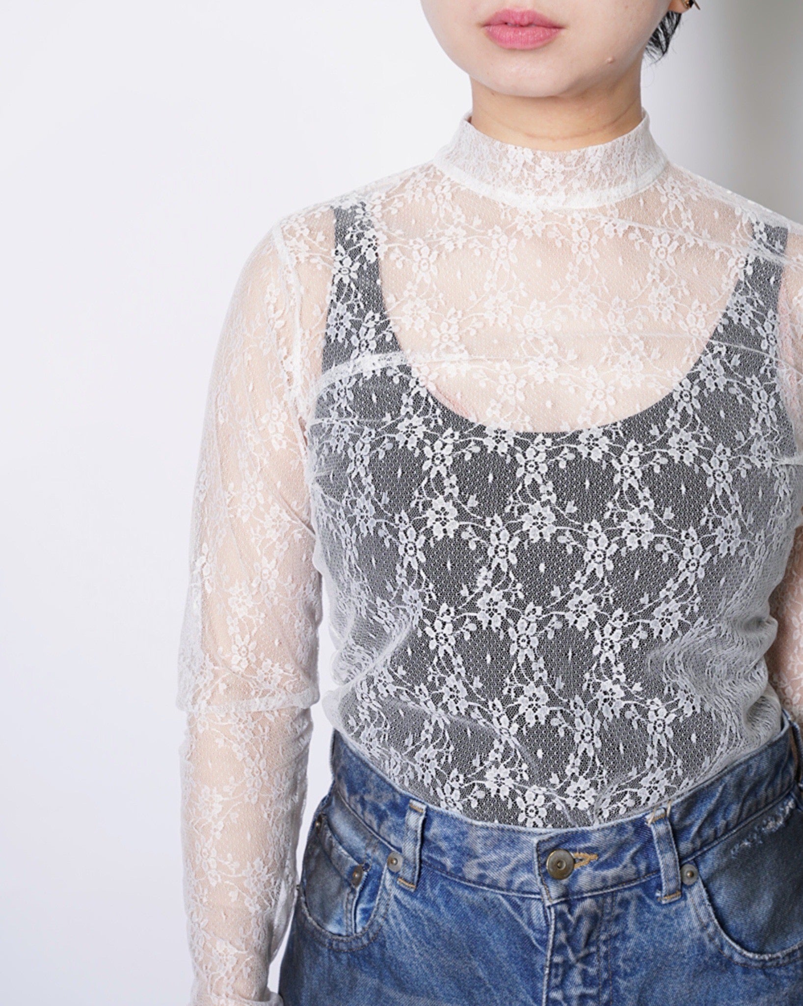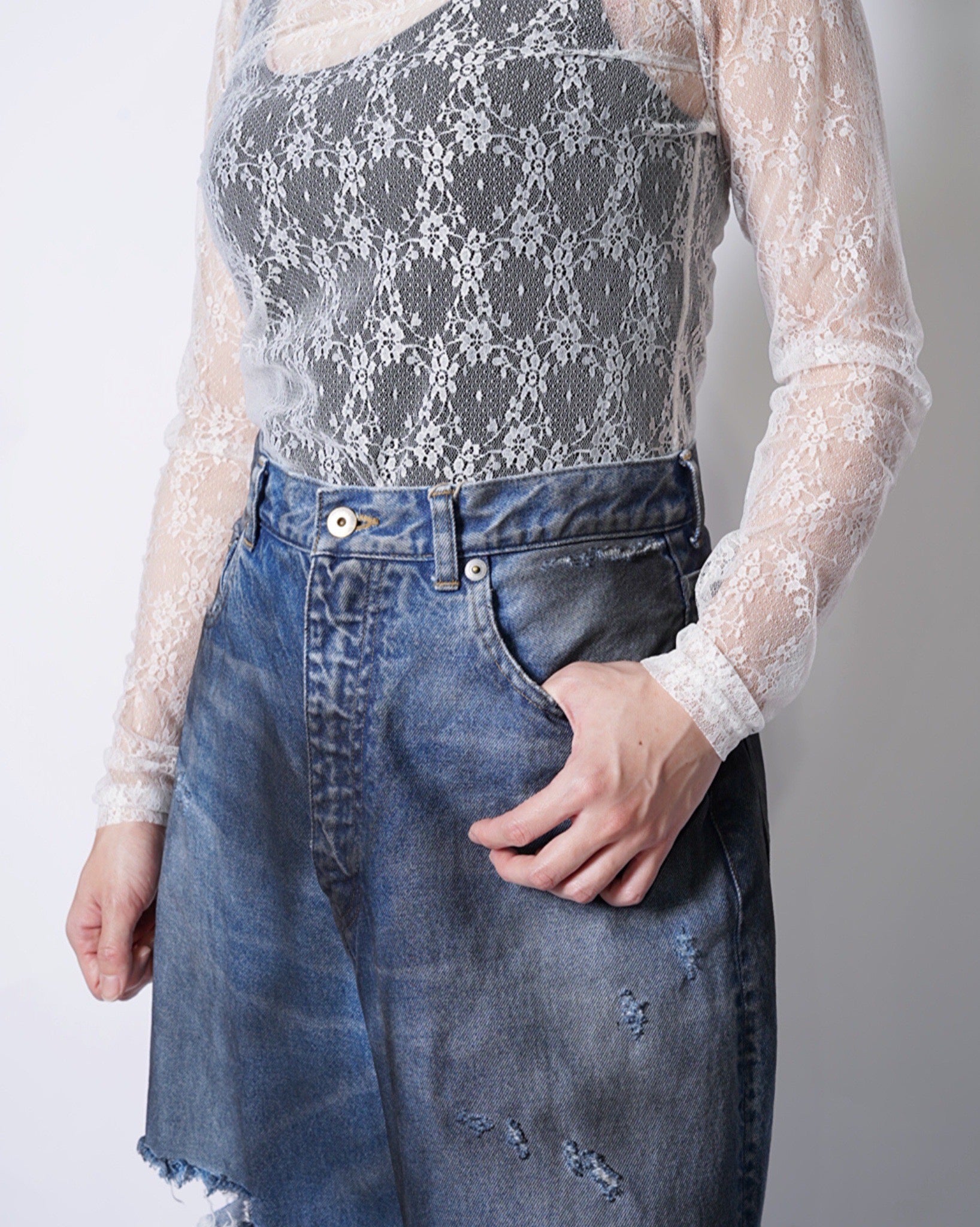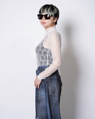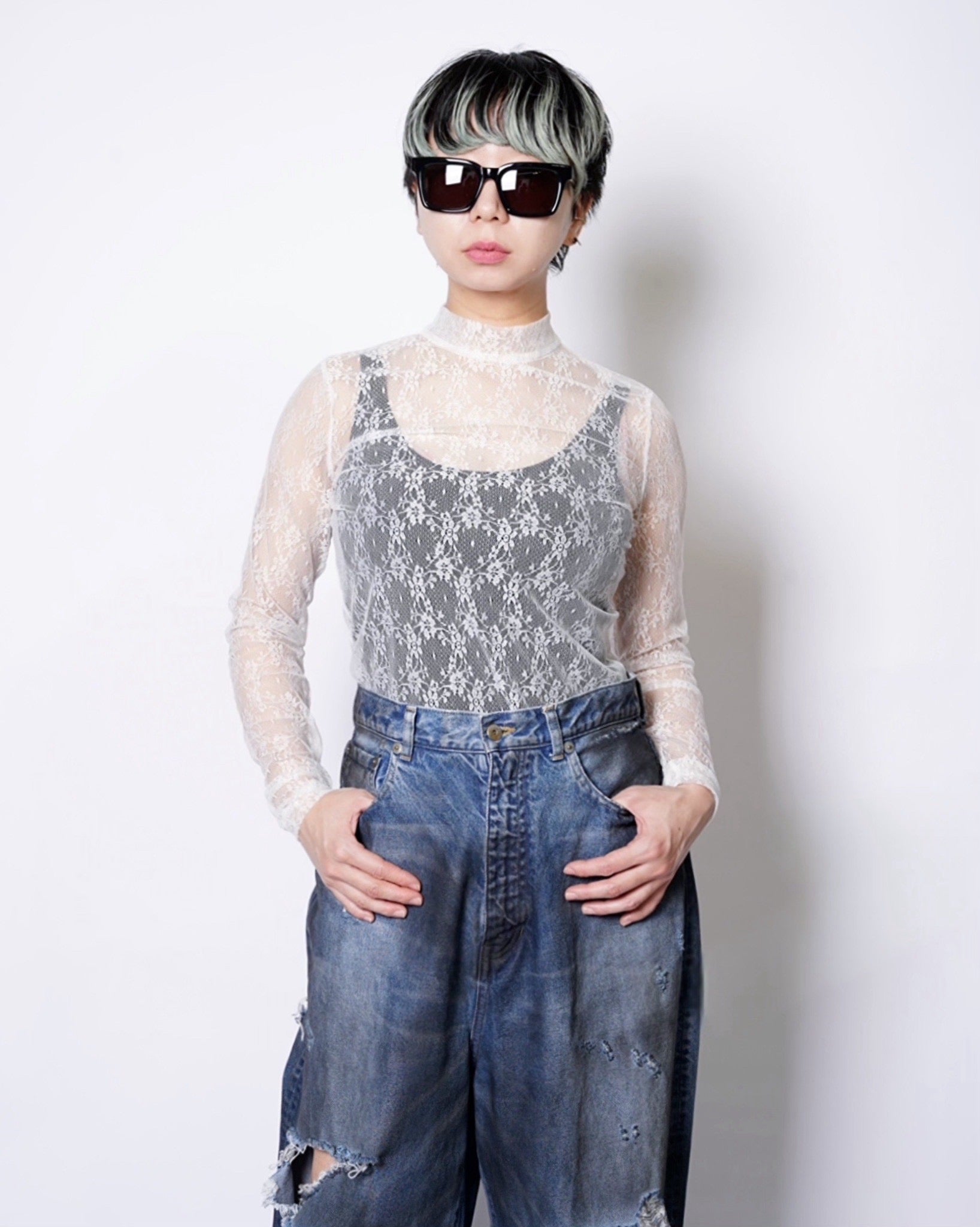 ・レース素材によるアイテムで華やかで軽快な仕上がりのアイテムに。