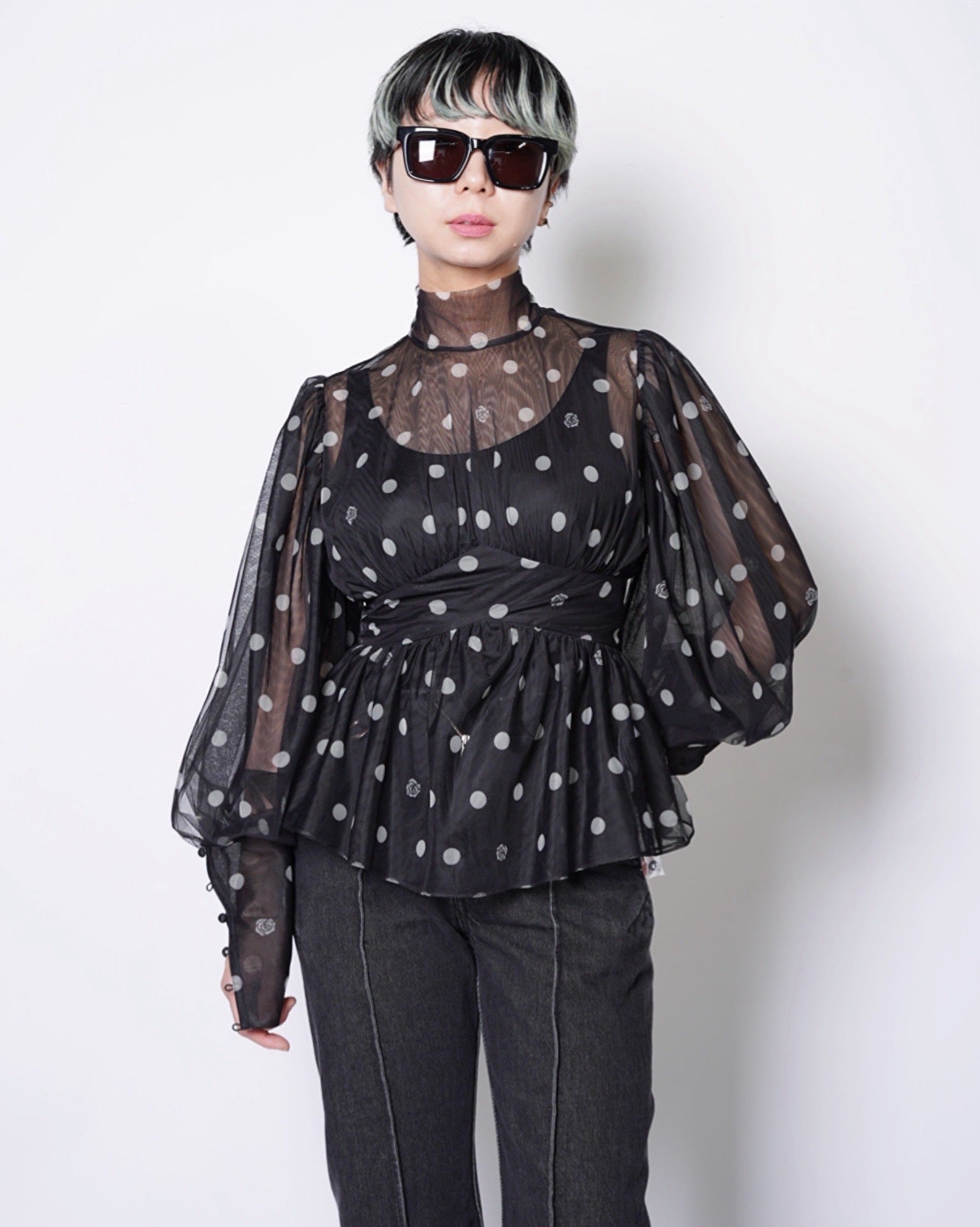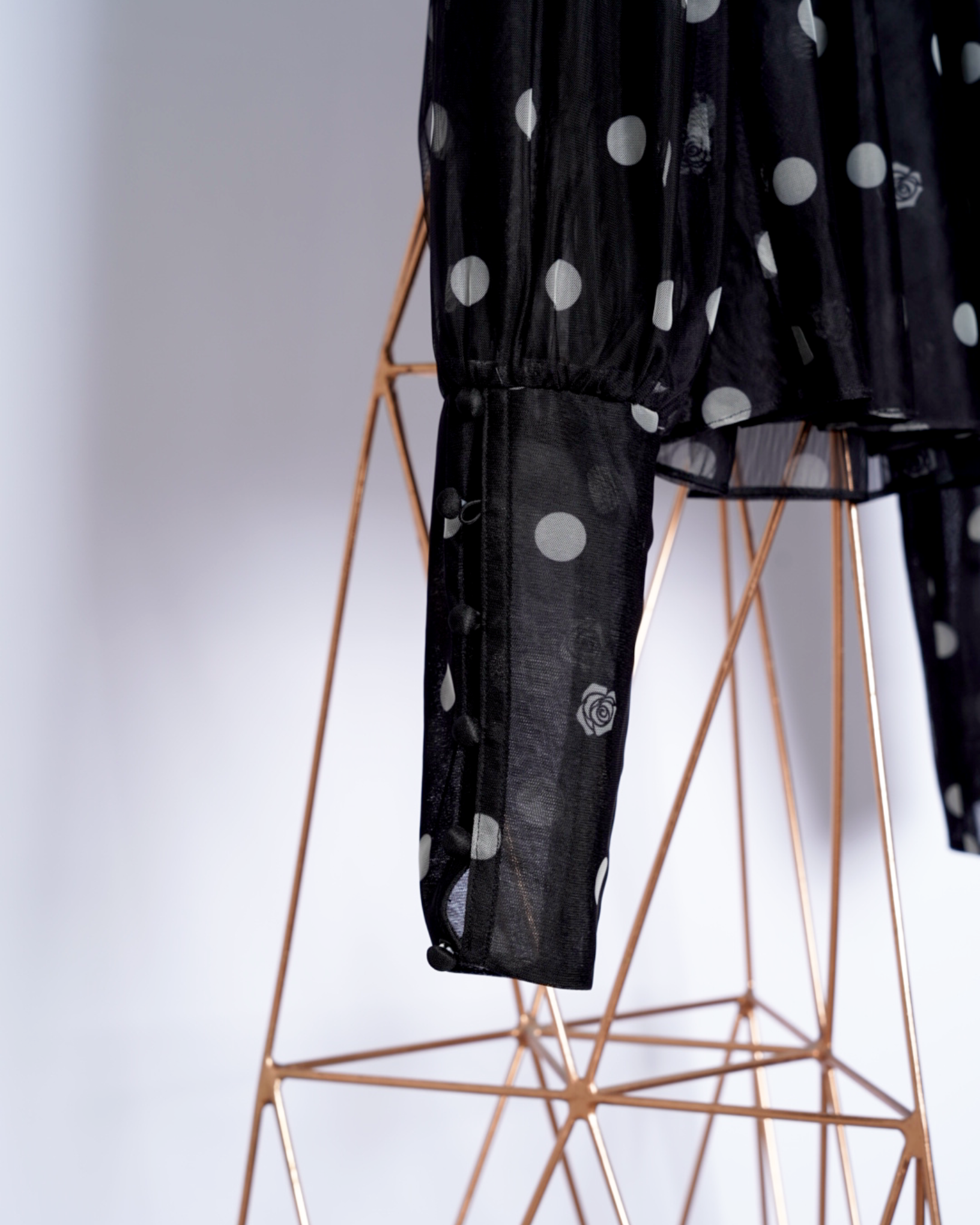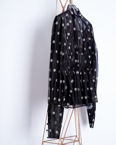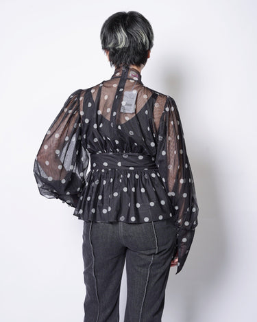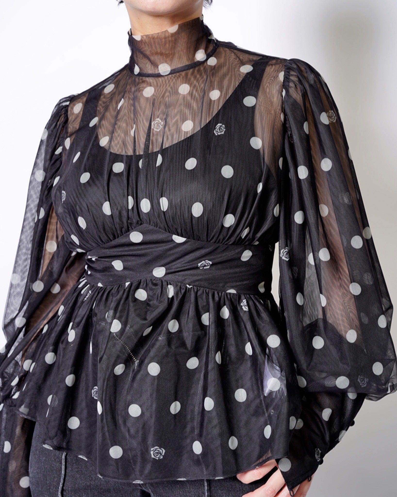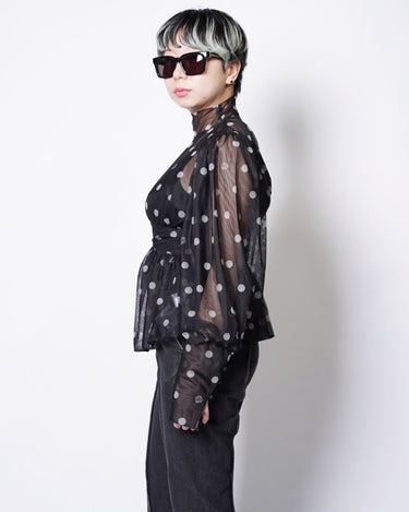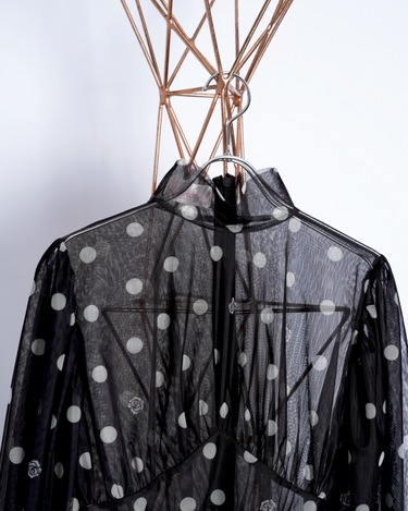 ・チュール素材でドット柄のシックでエレガントな印象に加えて、愛らしさをプラスしたデザインに。
