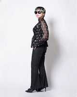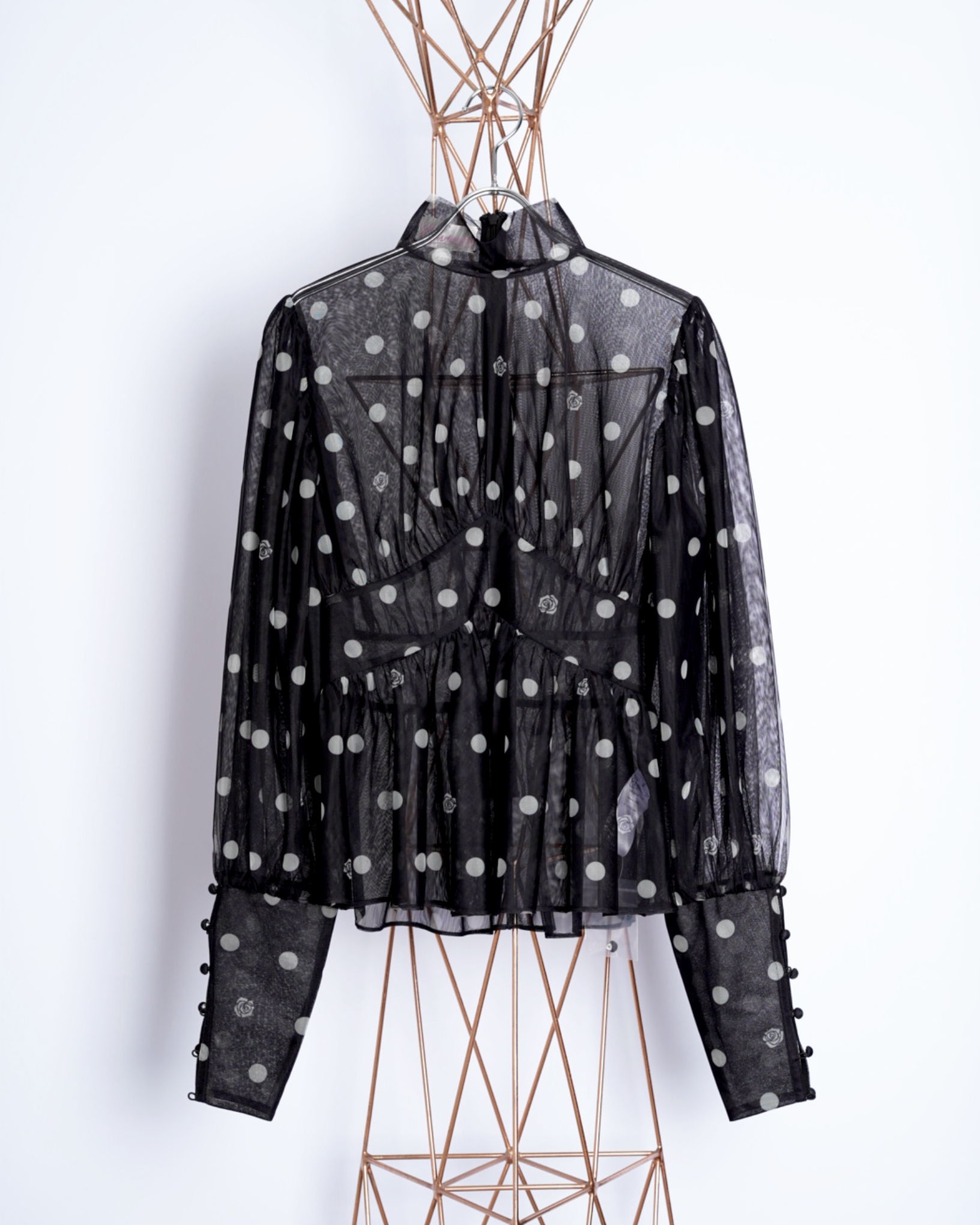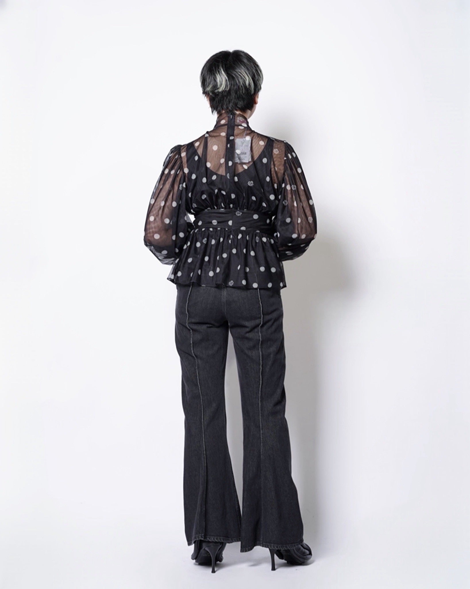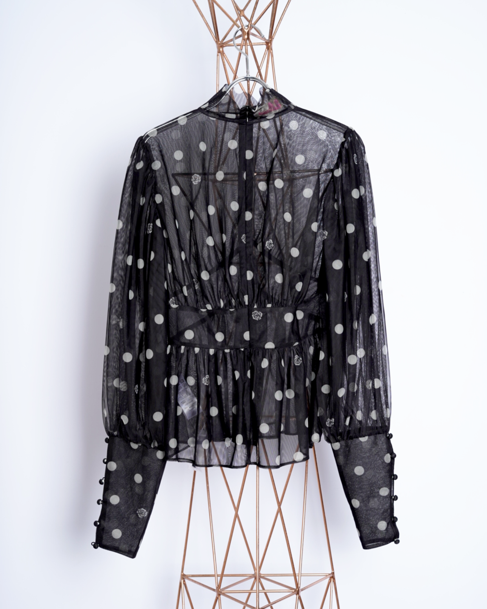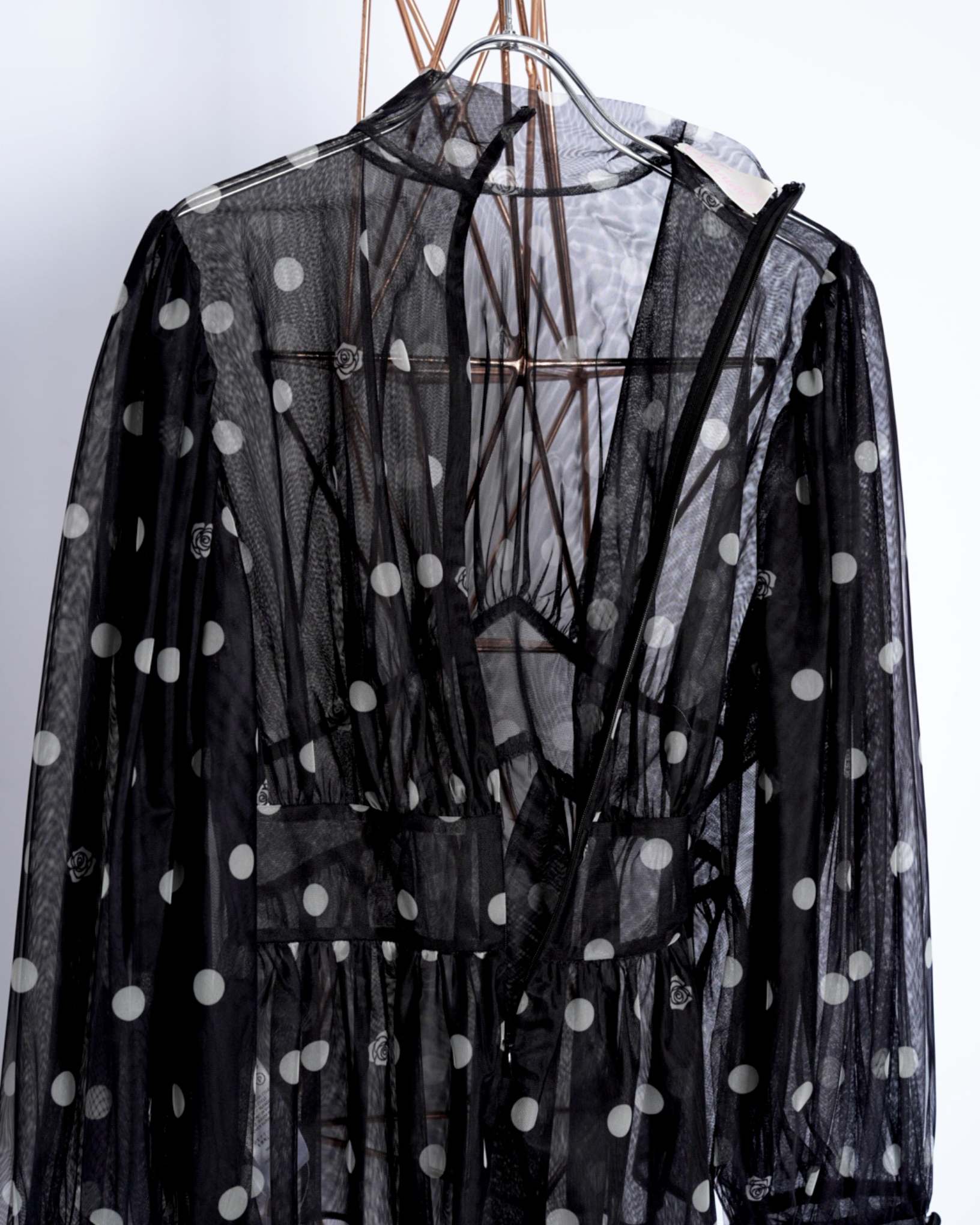 ・チュール素材でドット柄のシックでエレガントな印象に加えて、愛らしさをプラスしたデザインに。