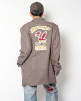 ・背面にはノスタルジーなバイカースタイルを彷彿とさせるデザインの刺繍を施しており、KAMIYAらしいヴィンテージライクなアクセントになっています。