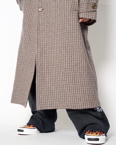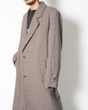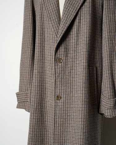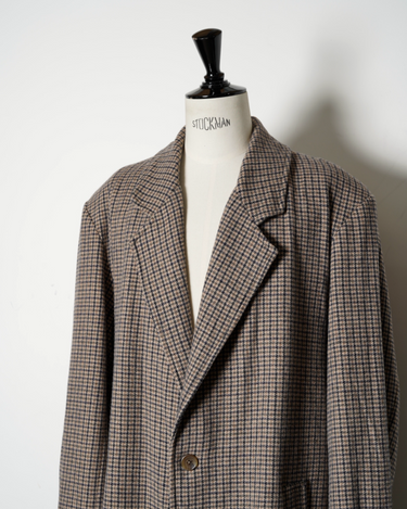 ・ハウンドトゥース柄のオーセンティックなツイードコートに独自のエイジング加工を施したデザインとなっており、しなやかな質感とこなれた風合いを生み出しています。