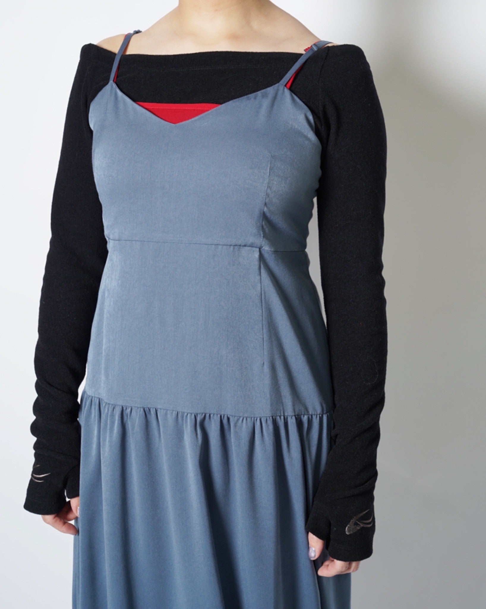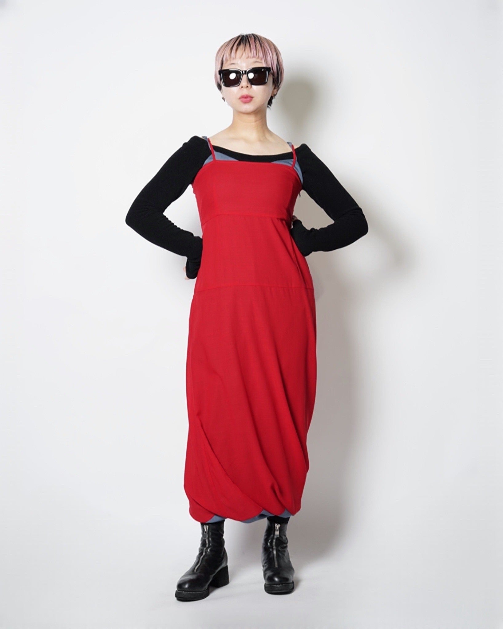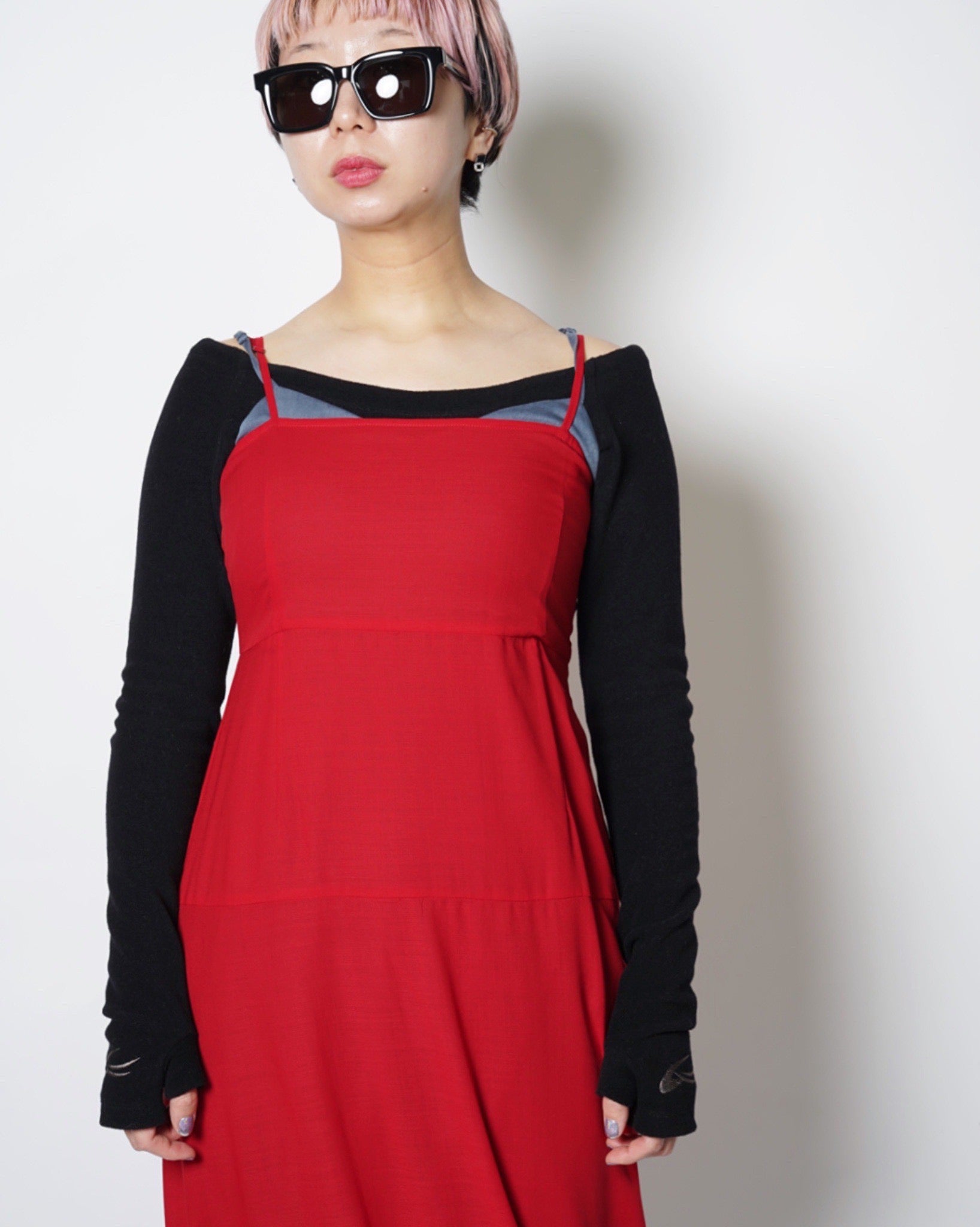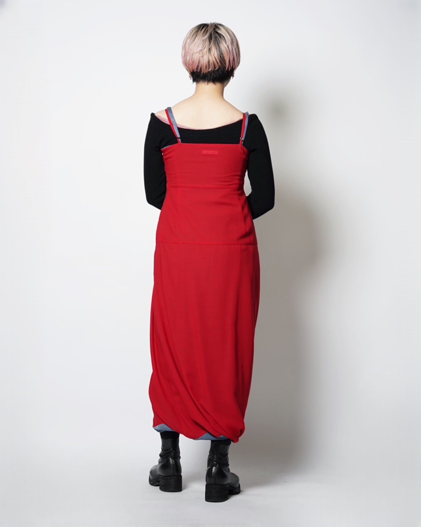 ・表面で着ると胸上と肩紐からレッドが覗き、レイヤードをしているかのような立体的な見栄えに。
