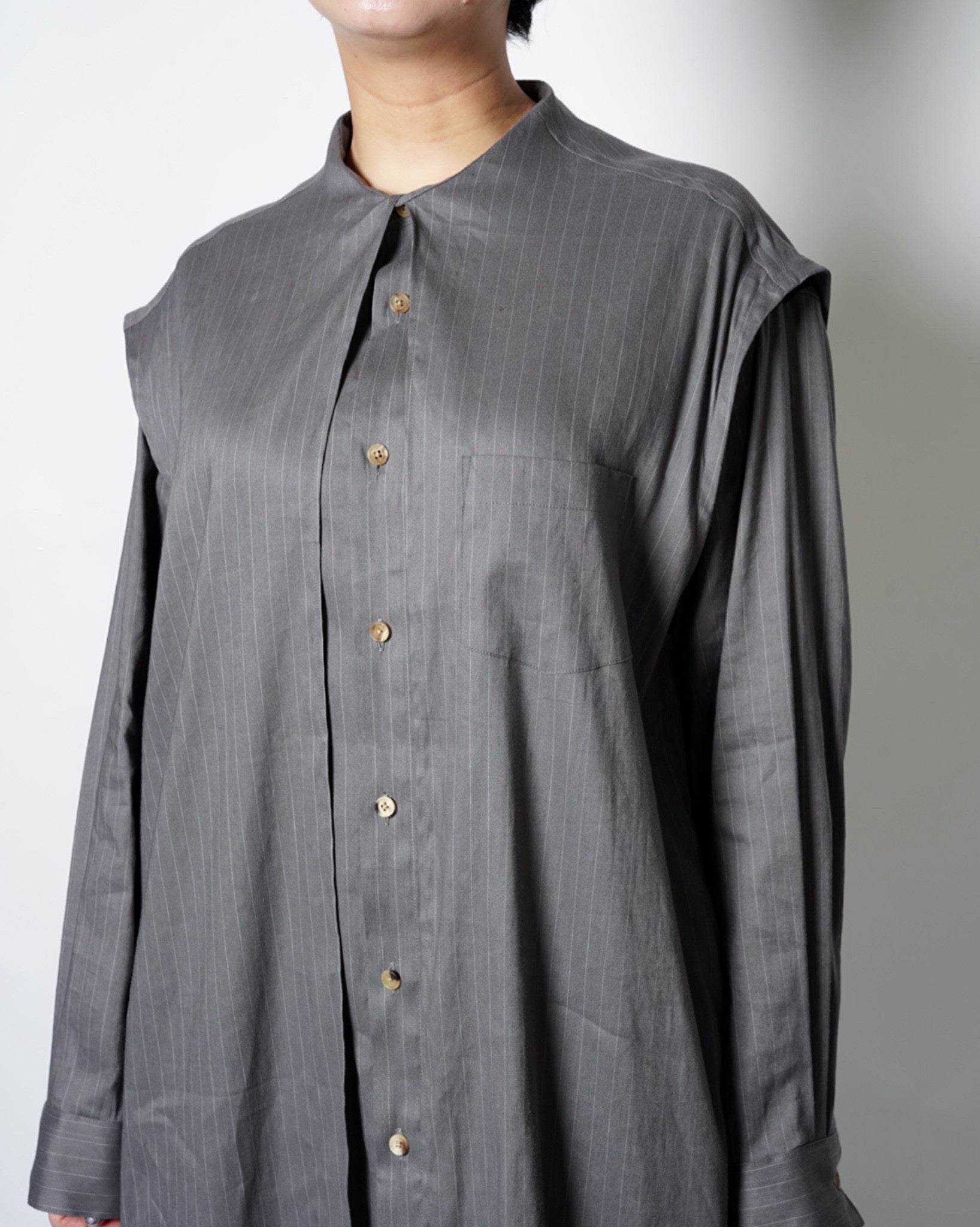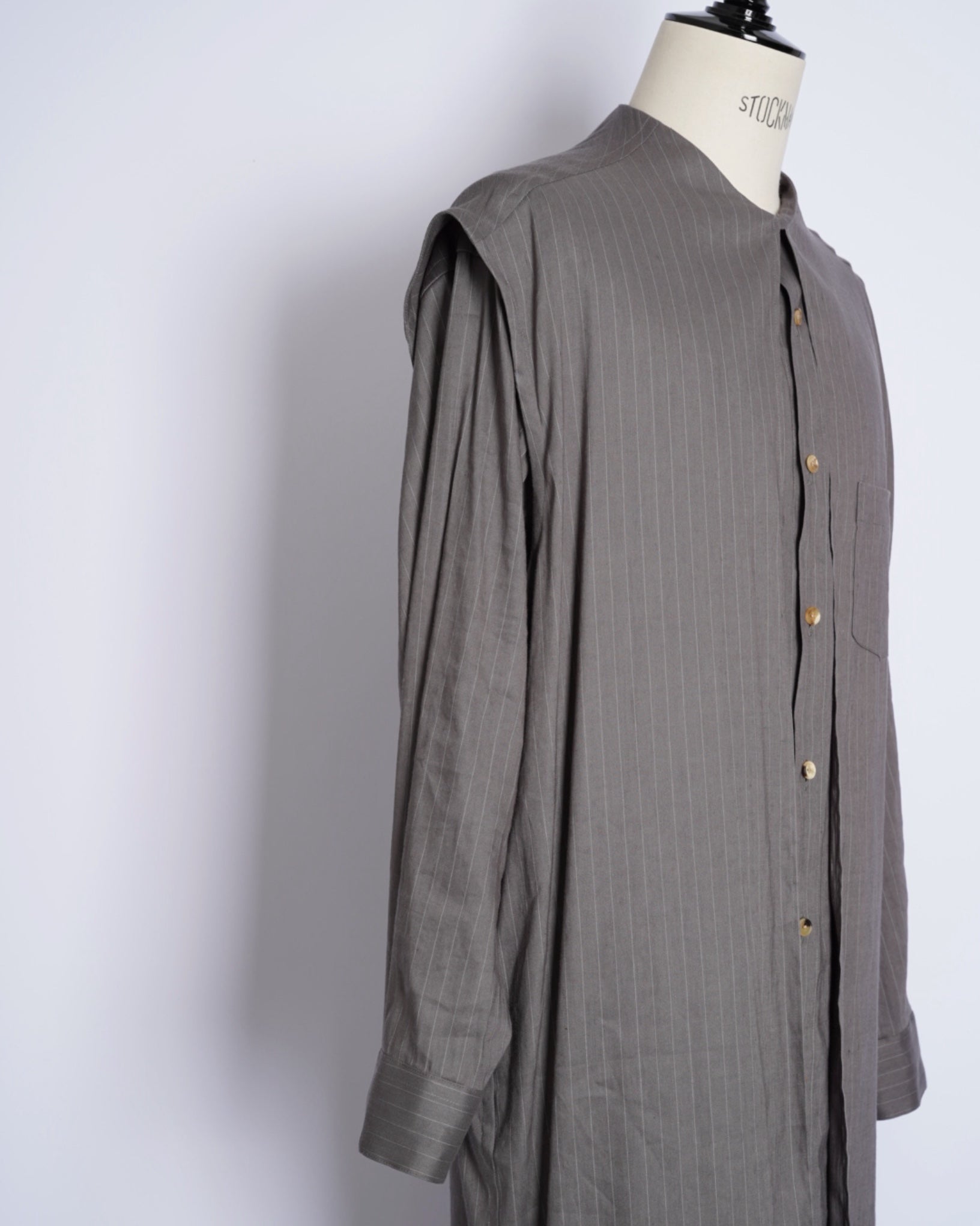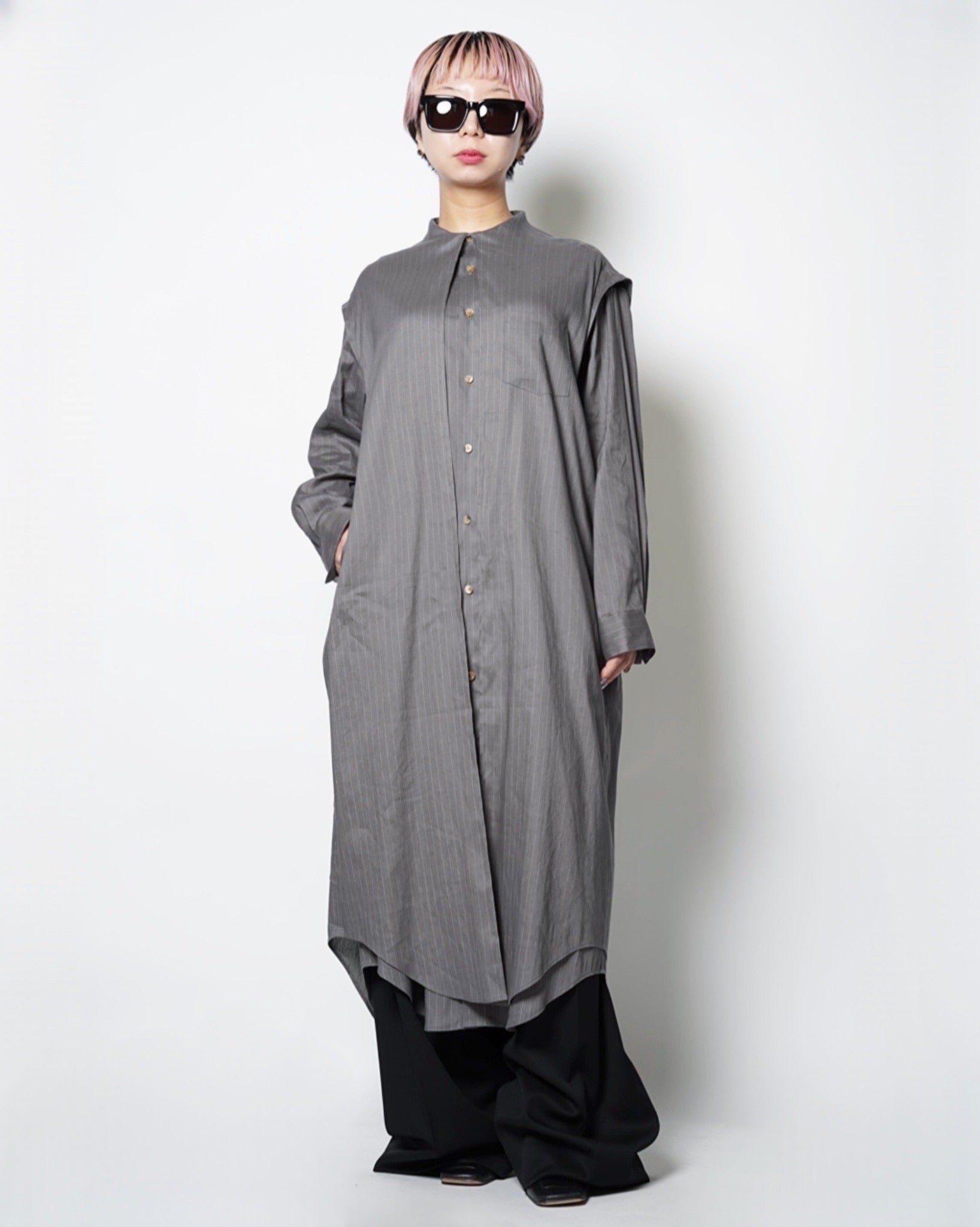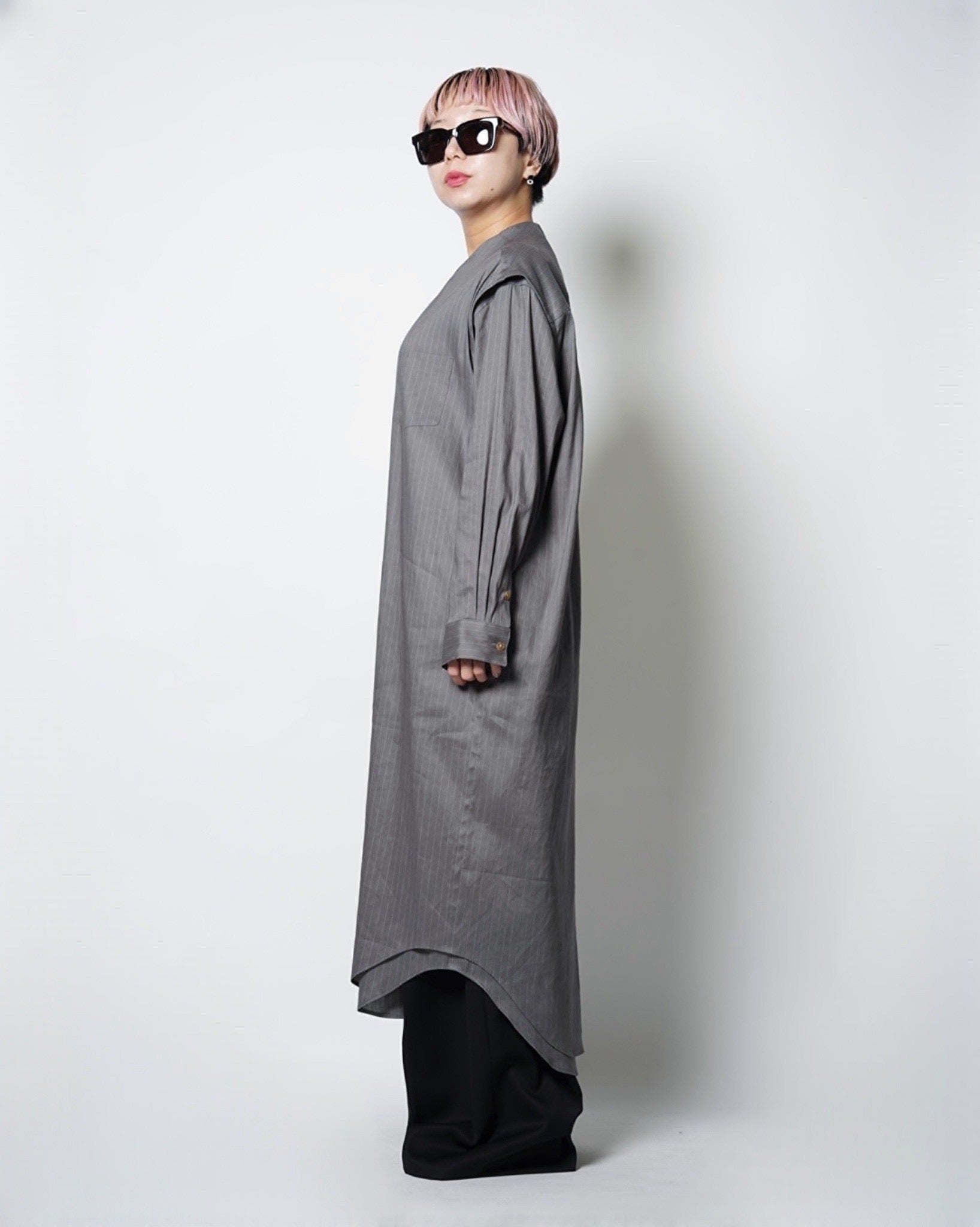 ・襟を巨大化させ、デザインしたレイヤードシャツドレス。