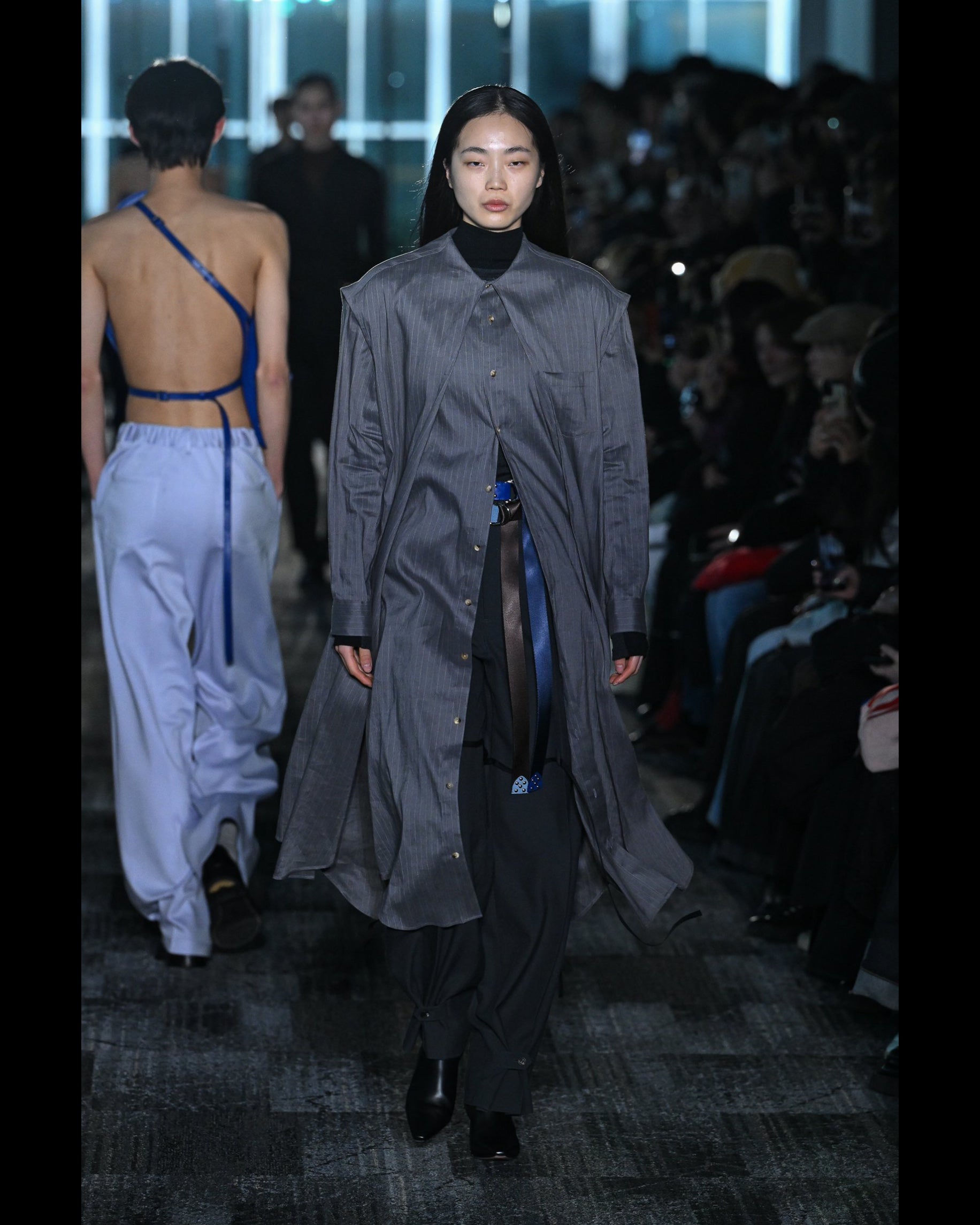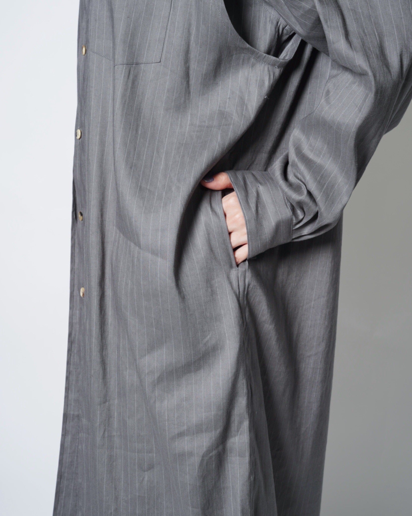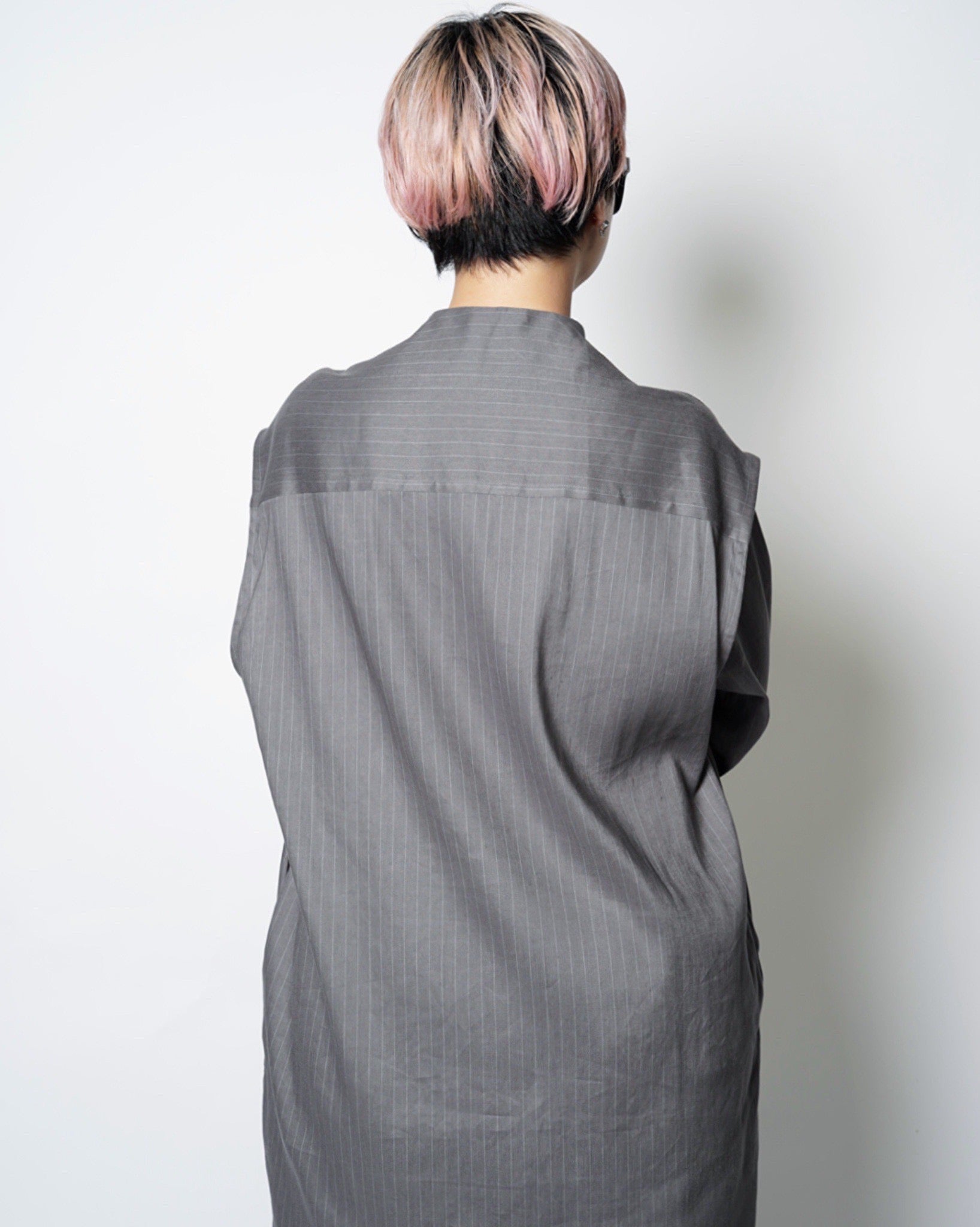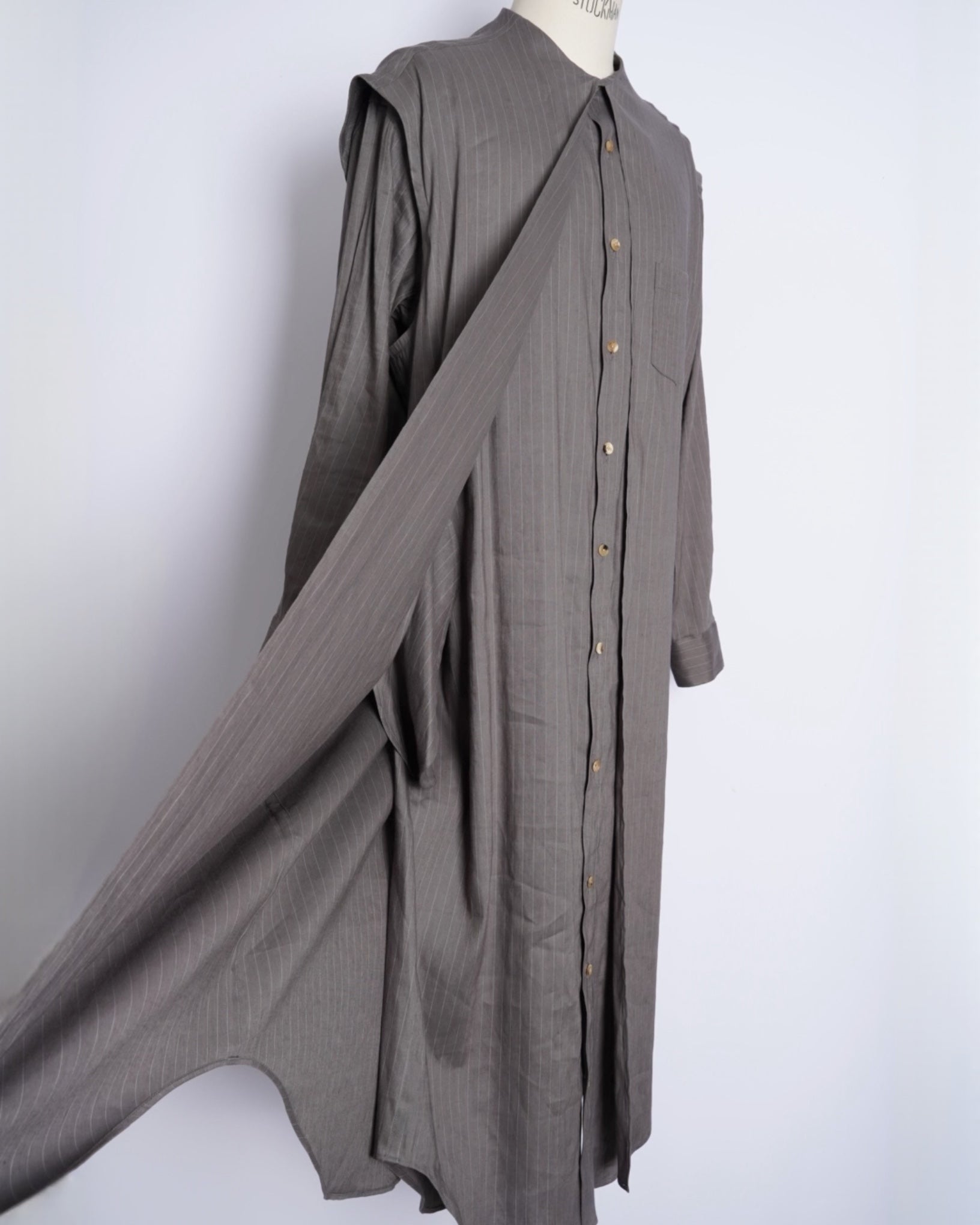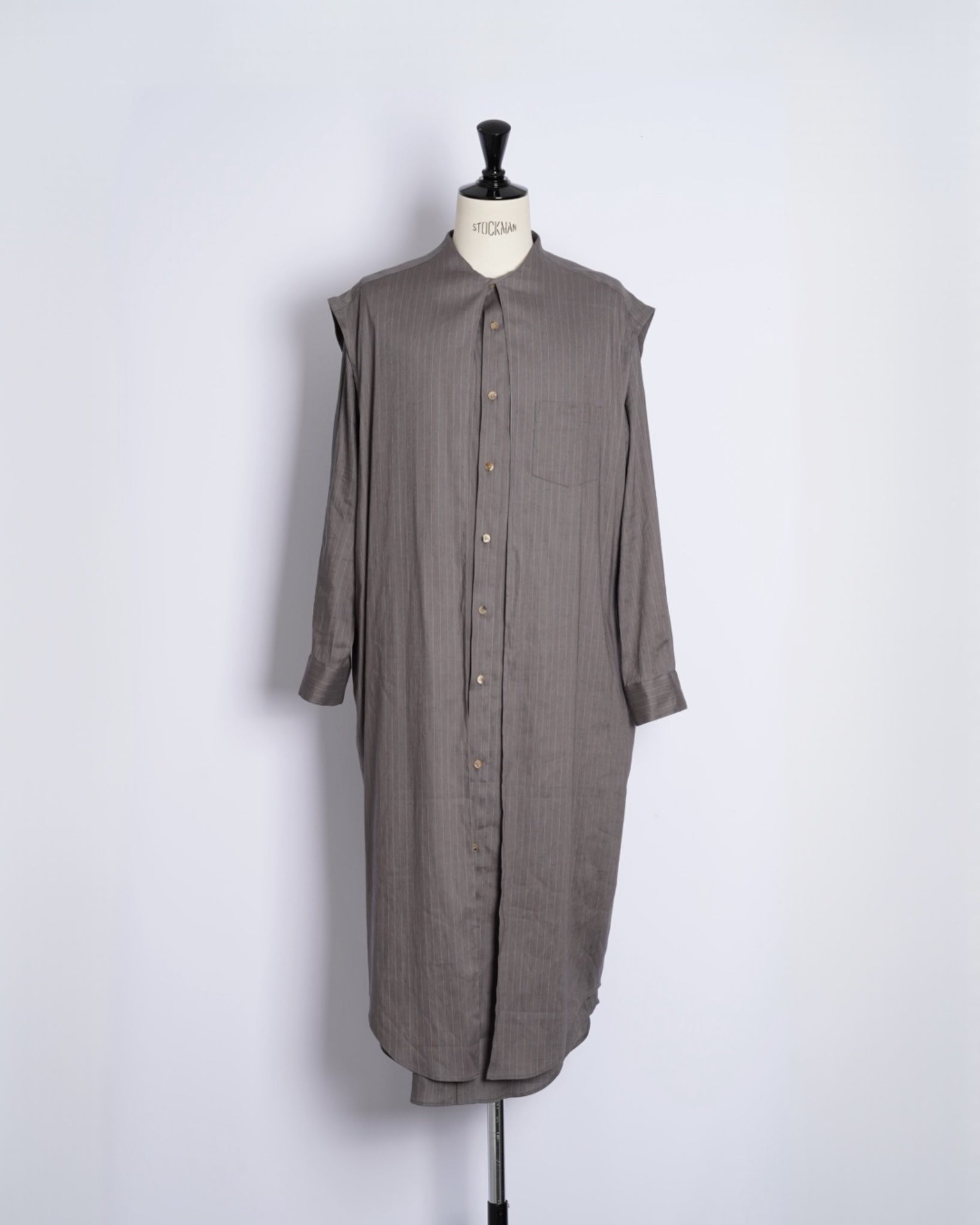 ・襟を巨大化させ、デザインしたレイヤードシャツドレス。