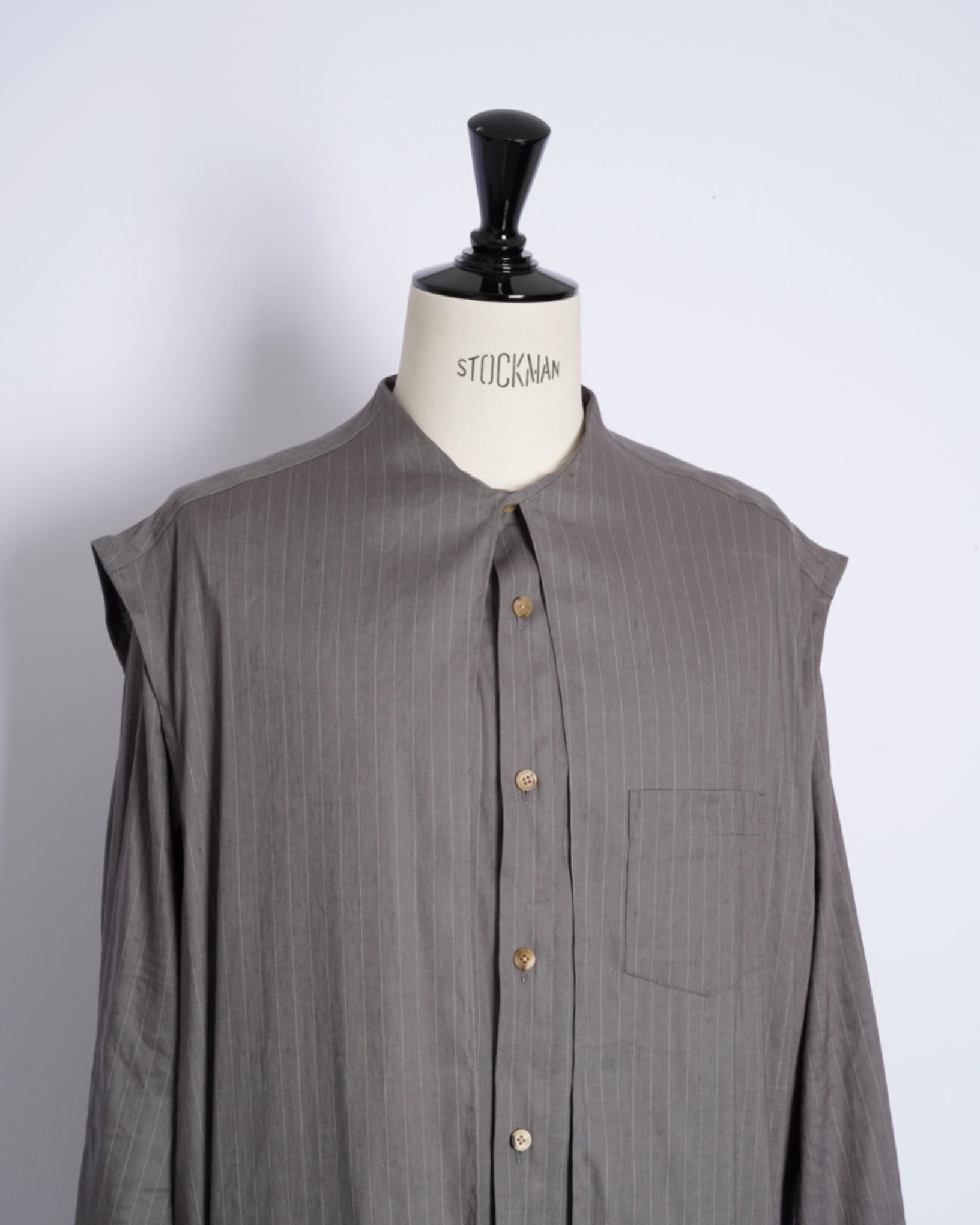 ・脇線を縫い合わせることでベストを羽織っているかのようにレイヤードされているシャツになっています。