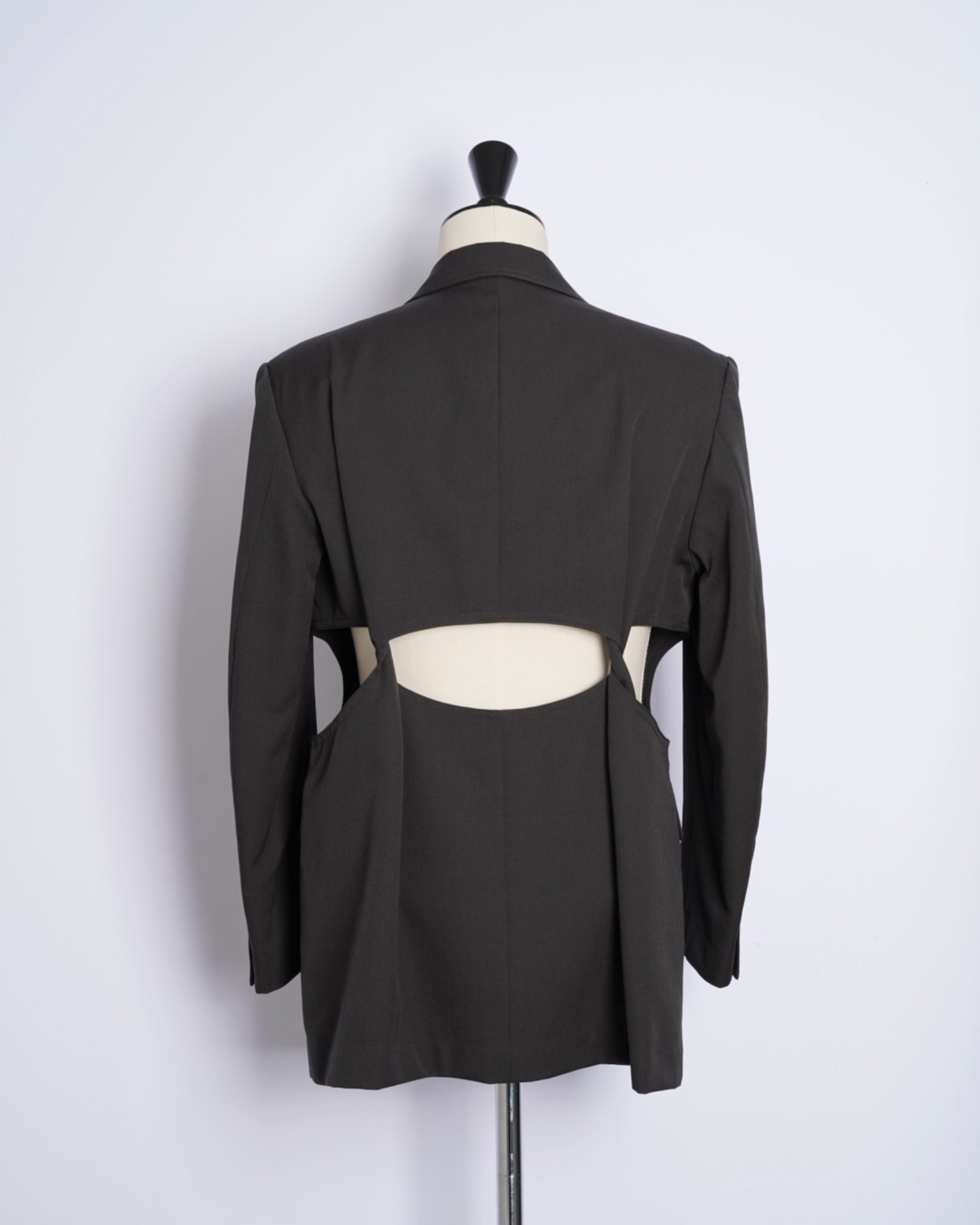 ・背面を大胆にツイストしており、ブランドコンセプトのWeird Luxuryを表した、異質的ながらもラグジュアリーなデザインとなっています。