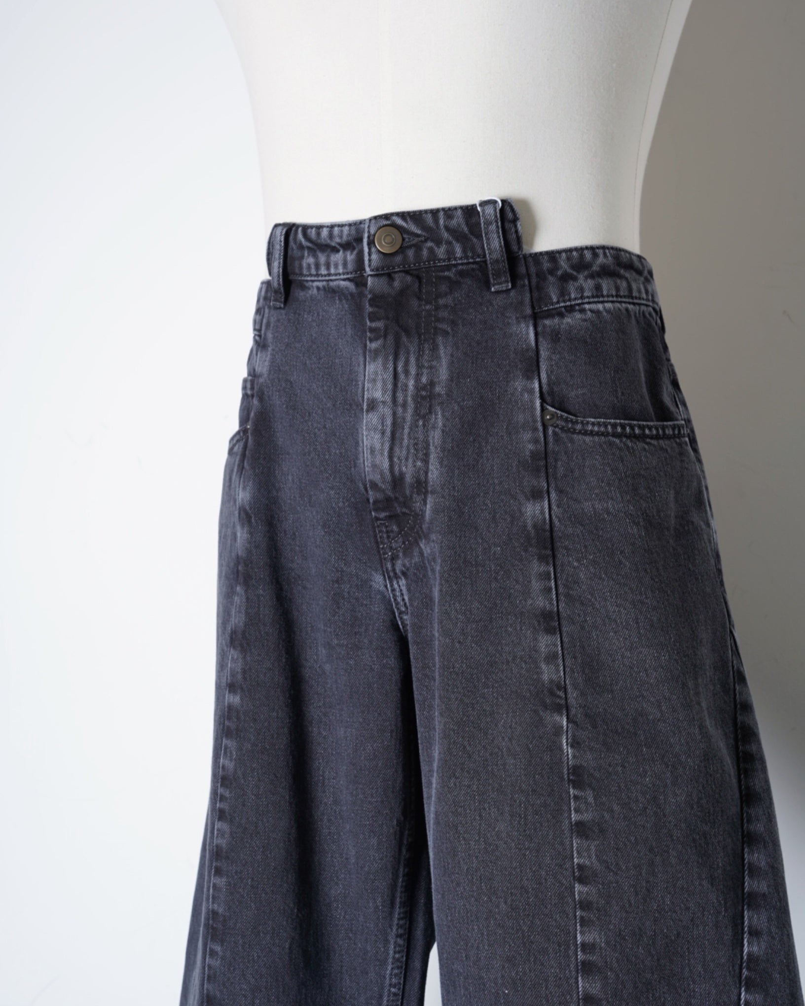 ・デニムらしい味がありながらも毛羽感のない綺麗な表面の質感により、デザイナーズらしい上品さのあるデニムパンツへと昇華しています。