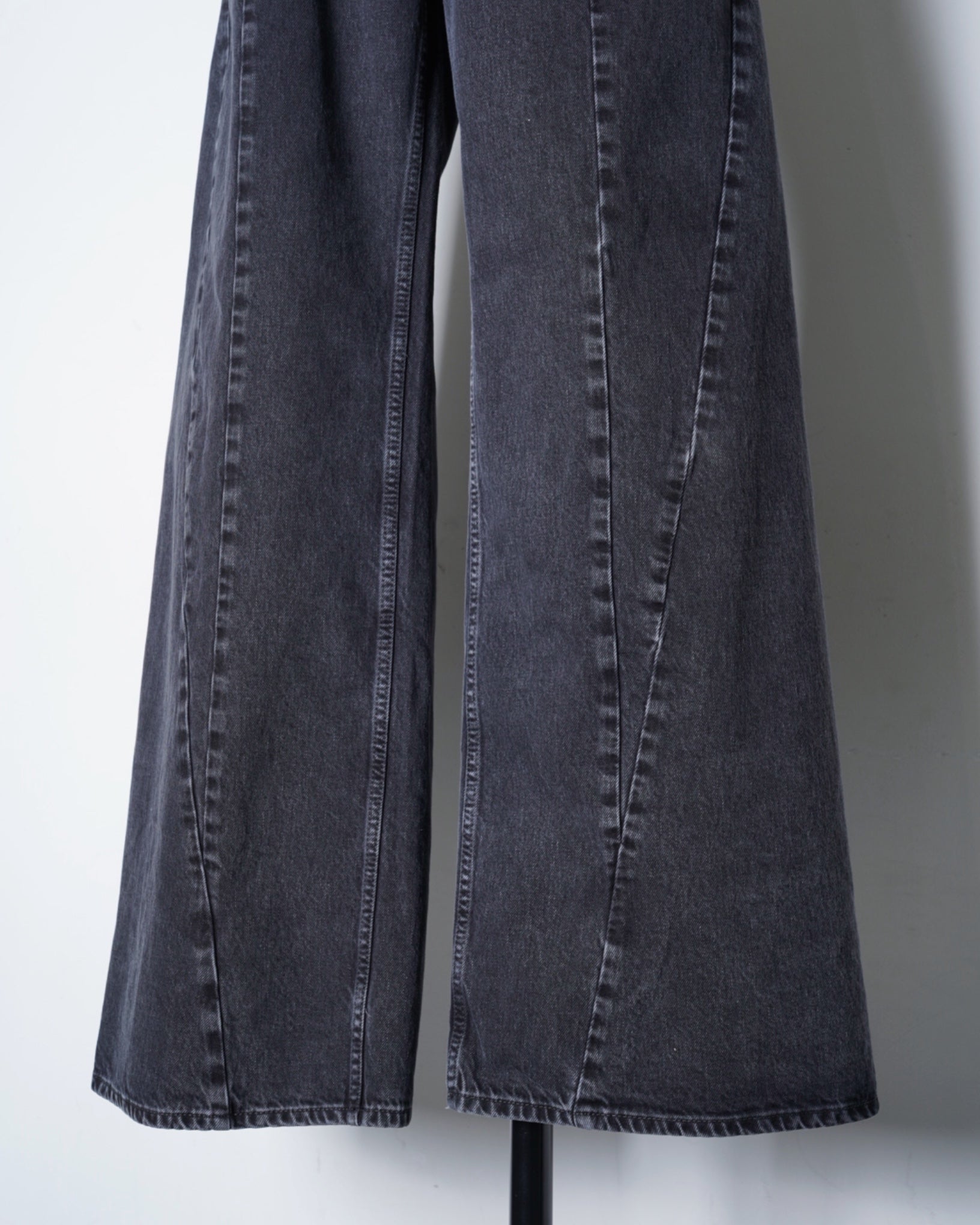 「BIAS CUT WIDE FLARE DENIM PANTS -BLUE-」