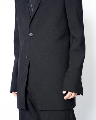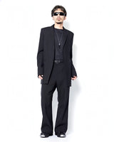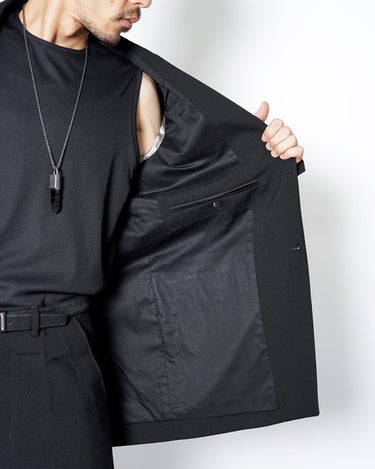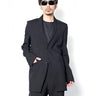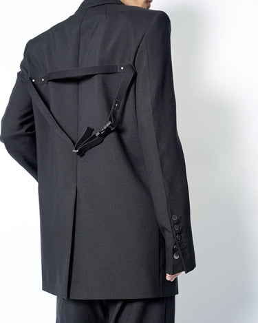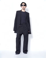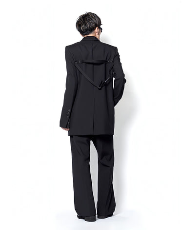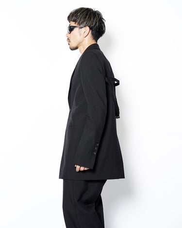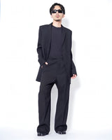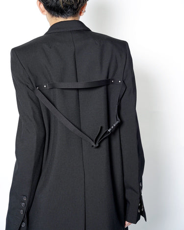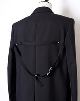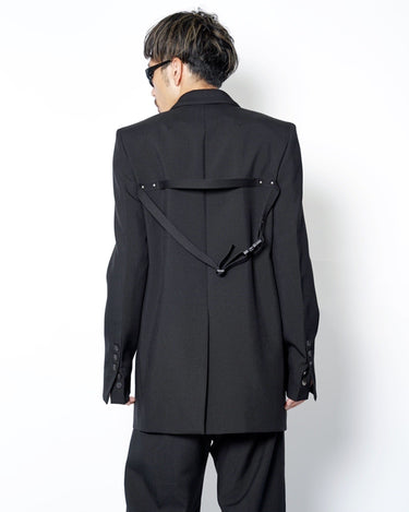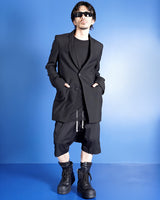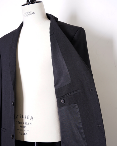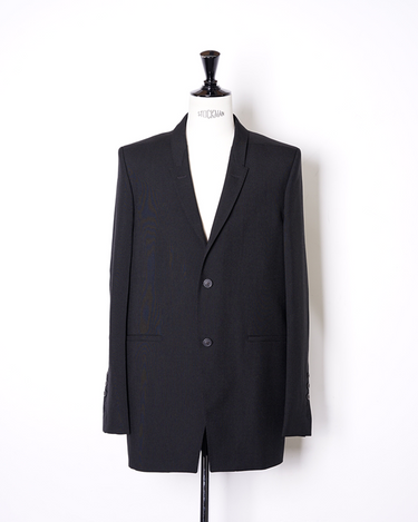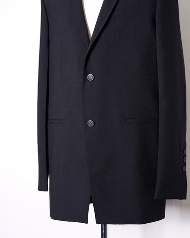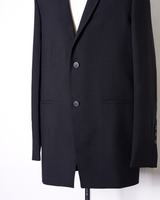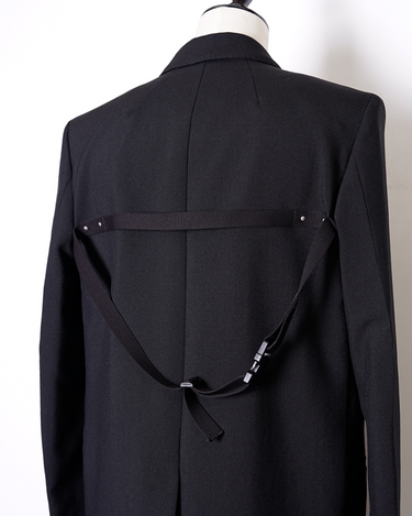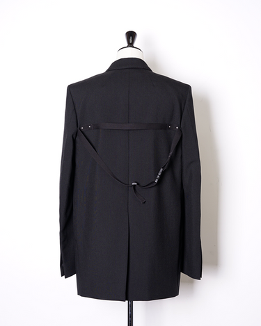 ・直線的なフォルムとカッティングが特徴のジャケットで、構築的なフォルムも相まってソリッドでエッジの効いたデザインに。