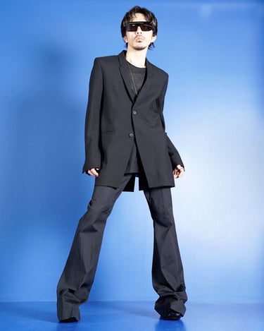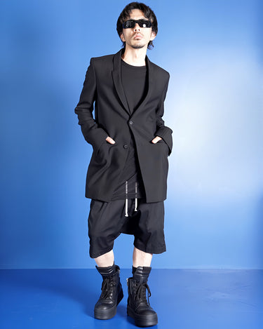 ・エッジの効いたフォルムと意匠が特徴的な、Rick Owensらしさを表したような一着。