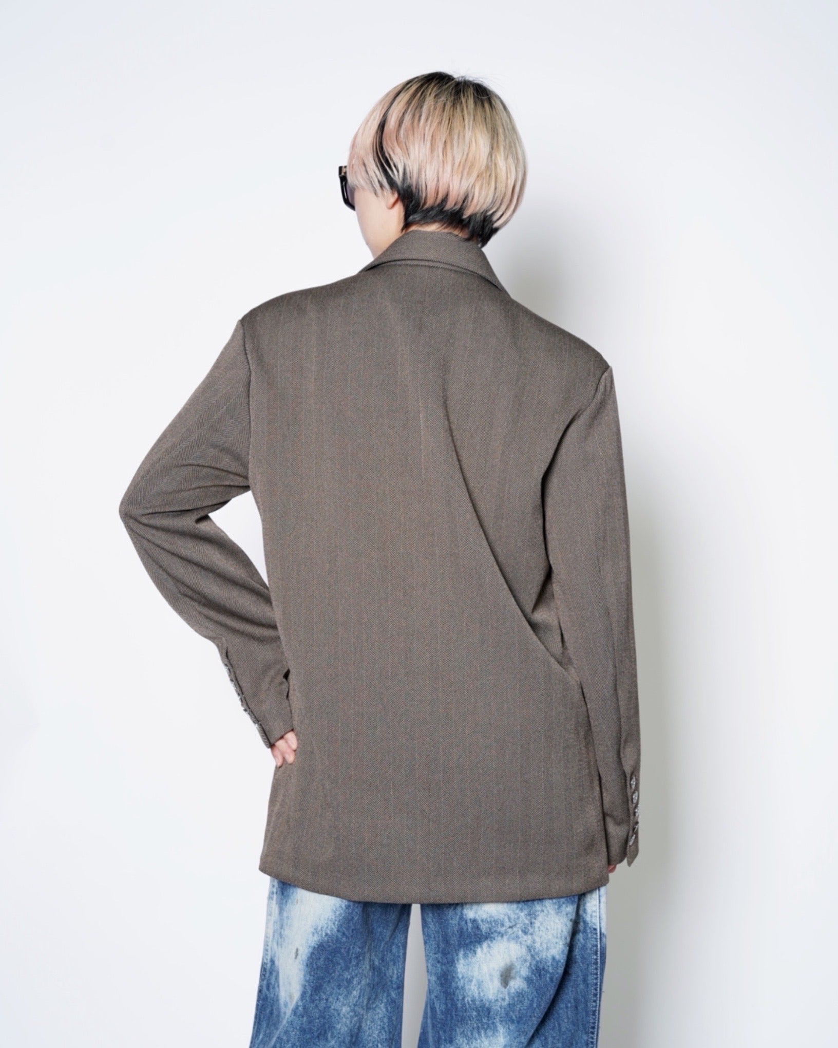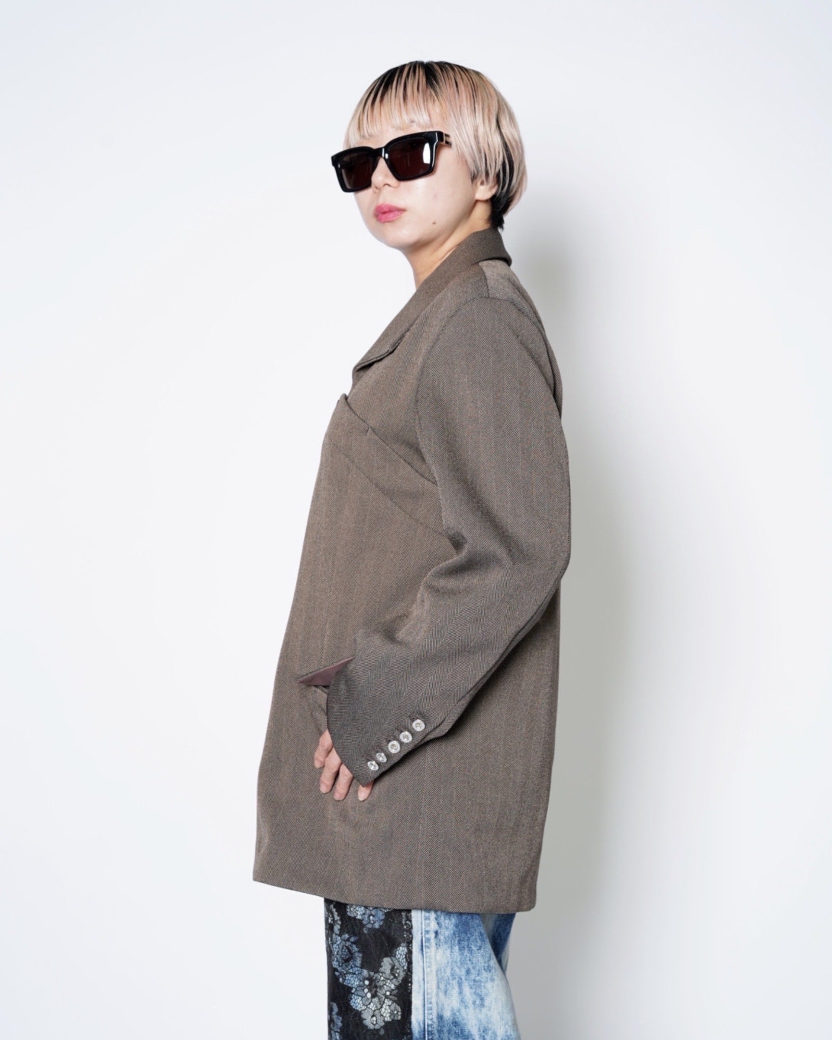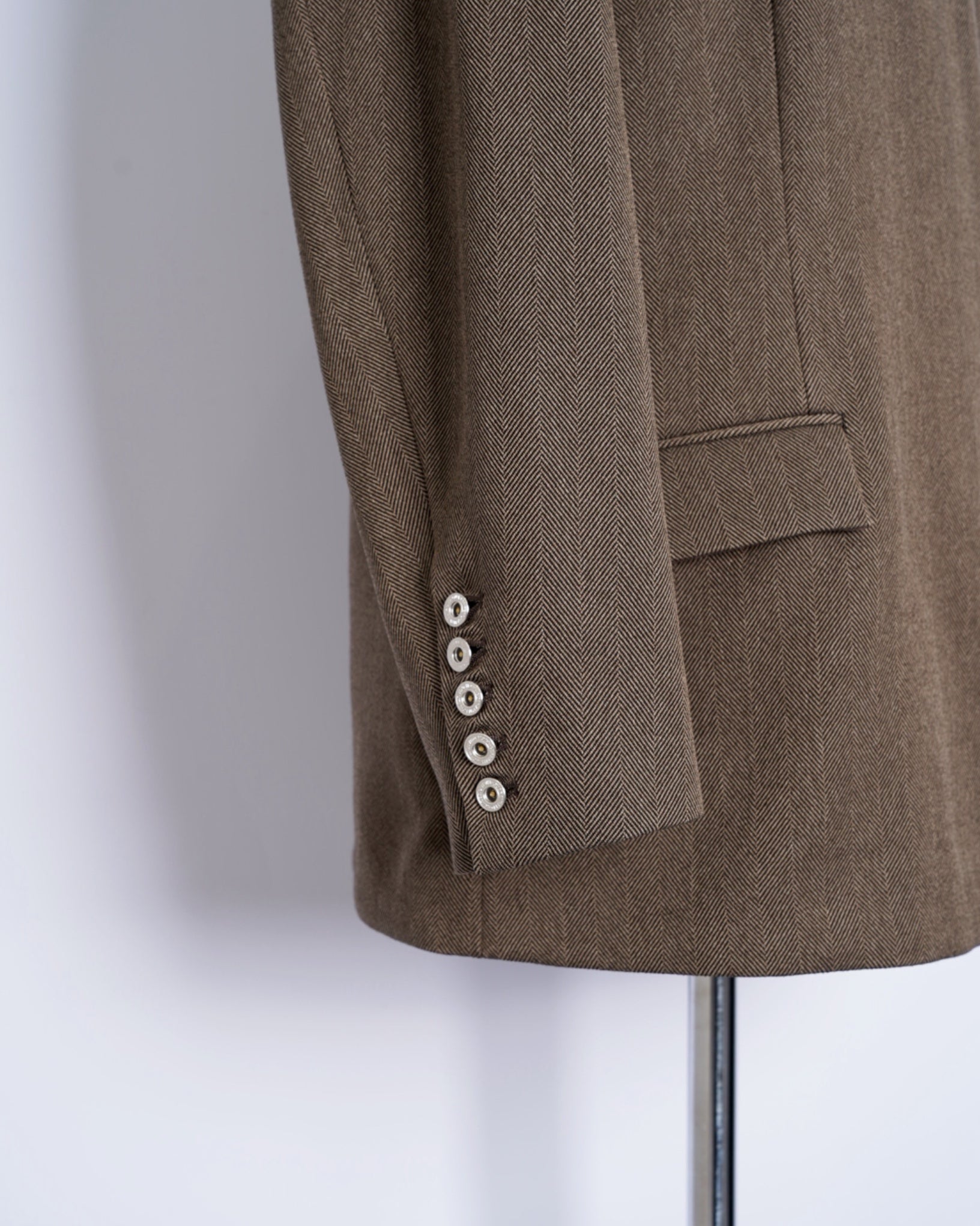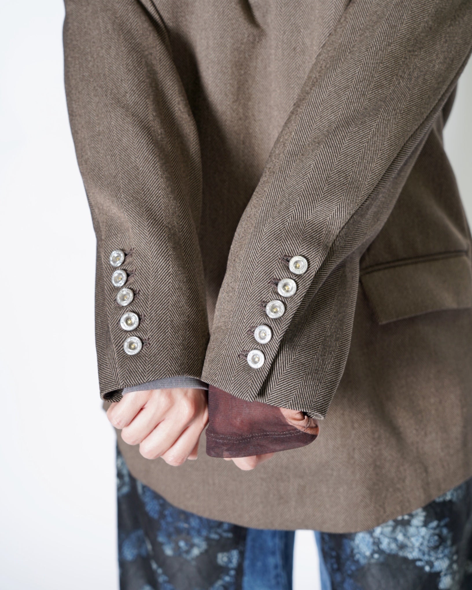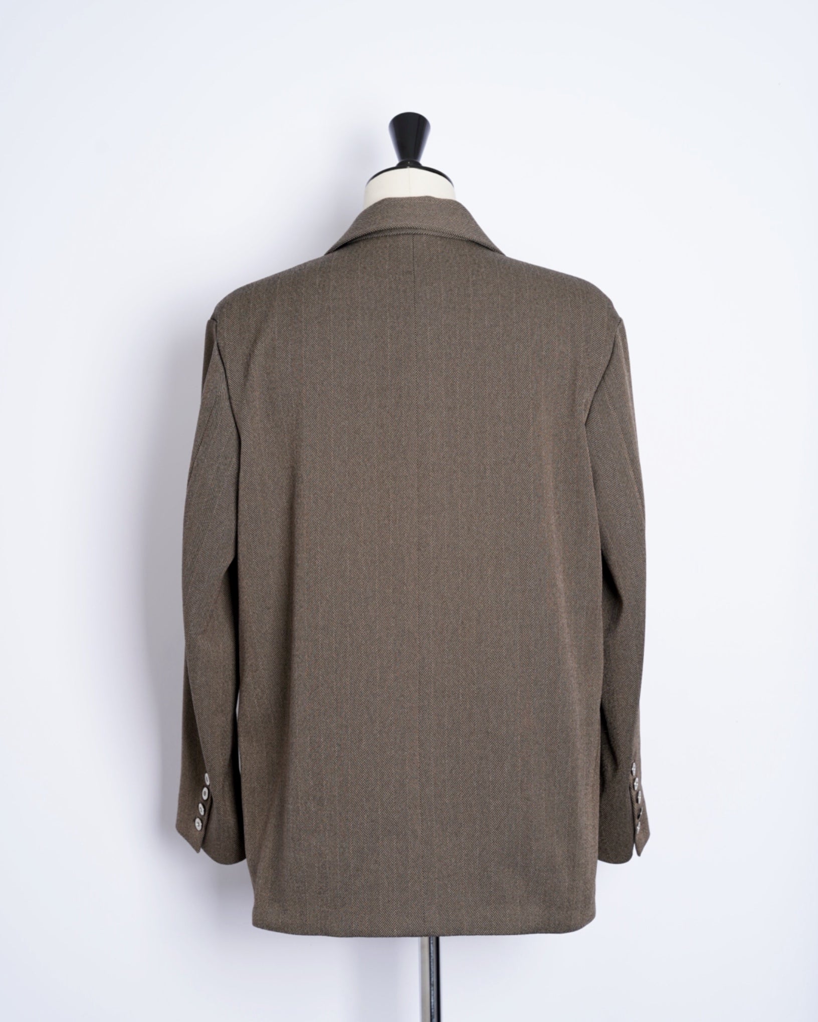 ・きめ細かなタッチのヘリンボーン素材となっており、無骨ながらも品の良さを感じさせる生地感です。