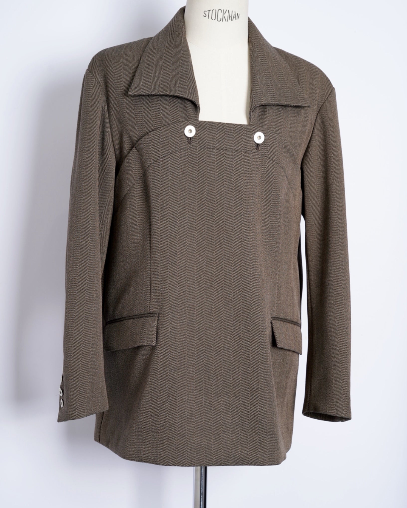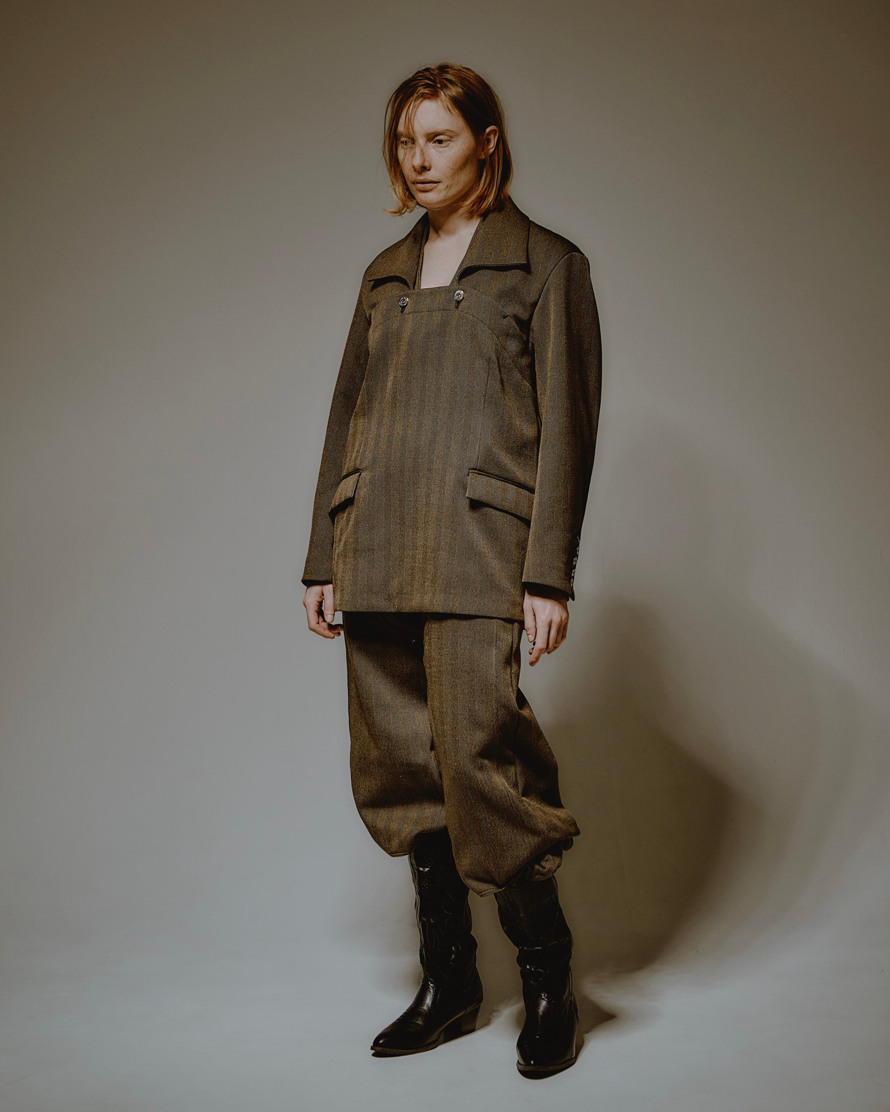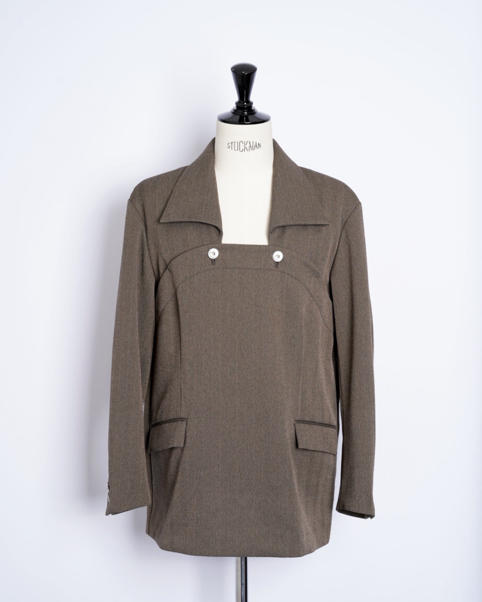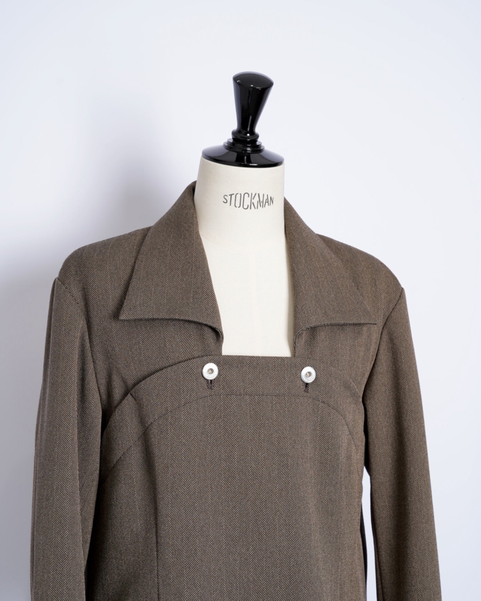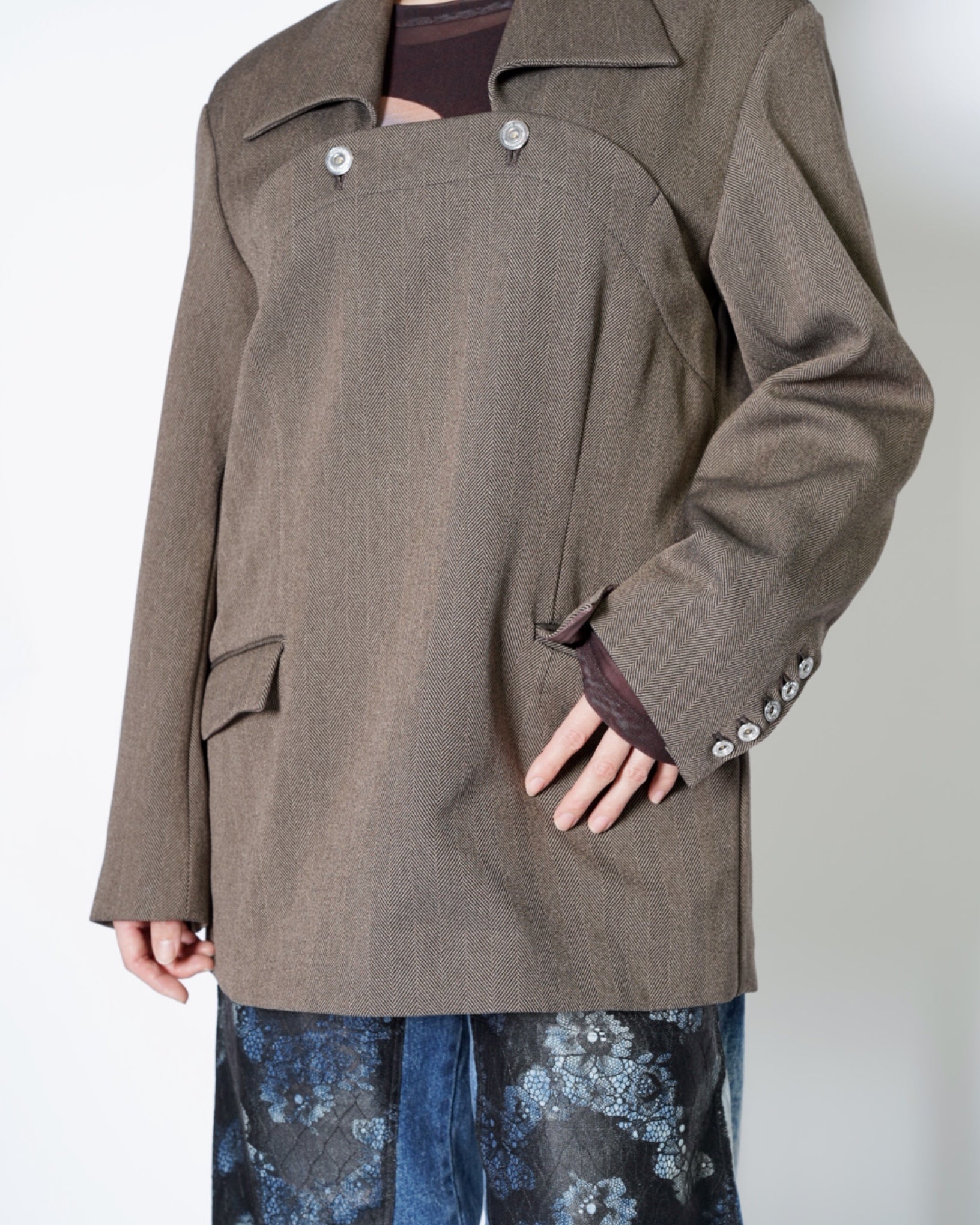 ・きめ細かなタッチのヘリンボーン素材となっており、無骨ながらも品の良さを感じさせる生地感です。