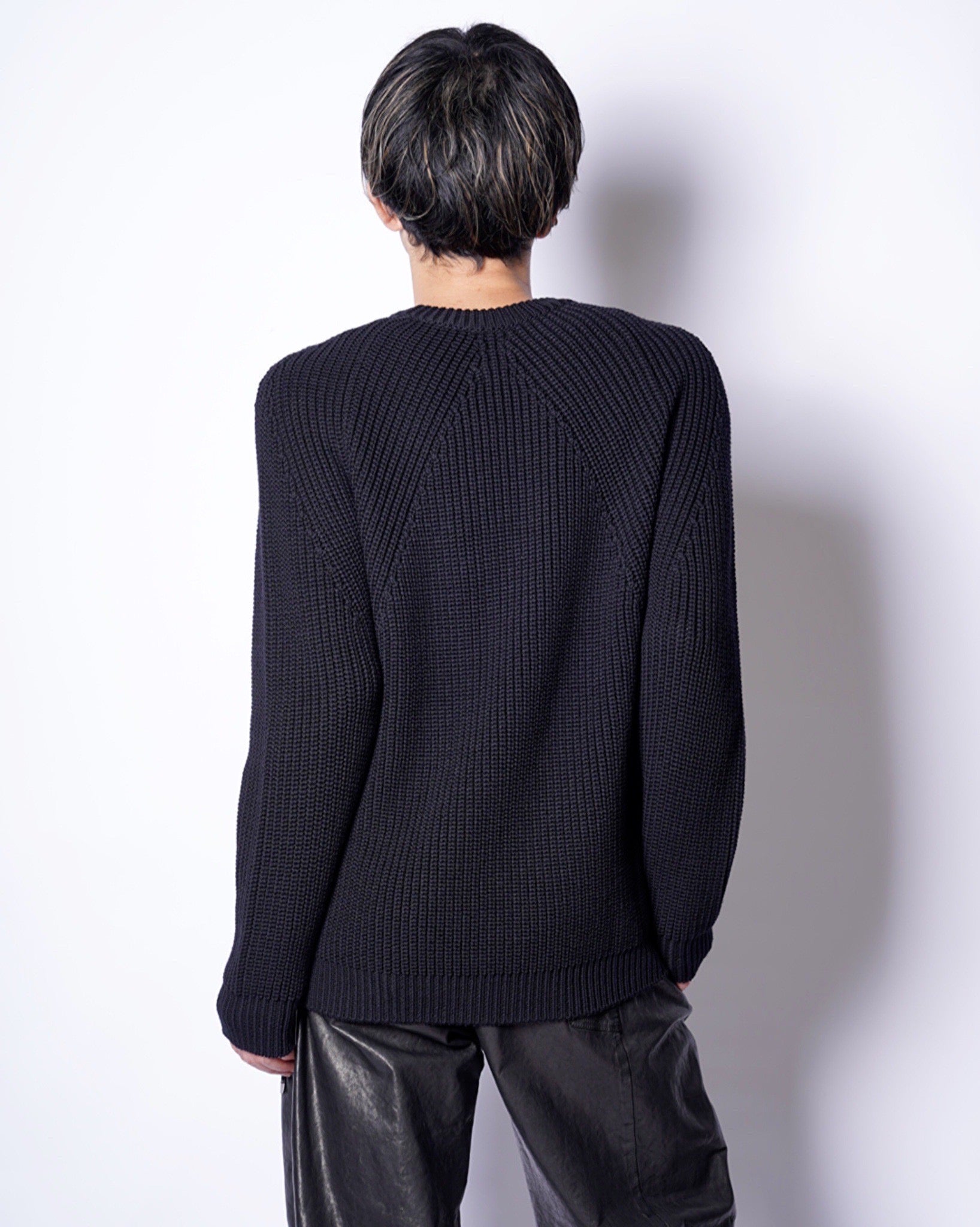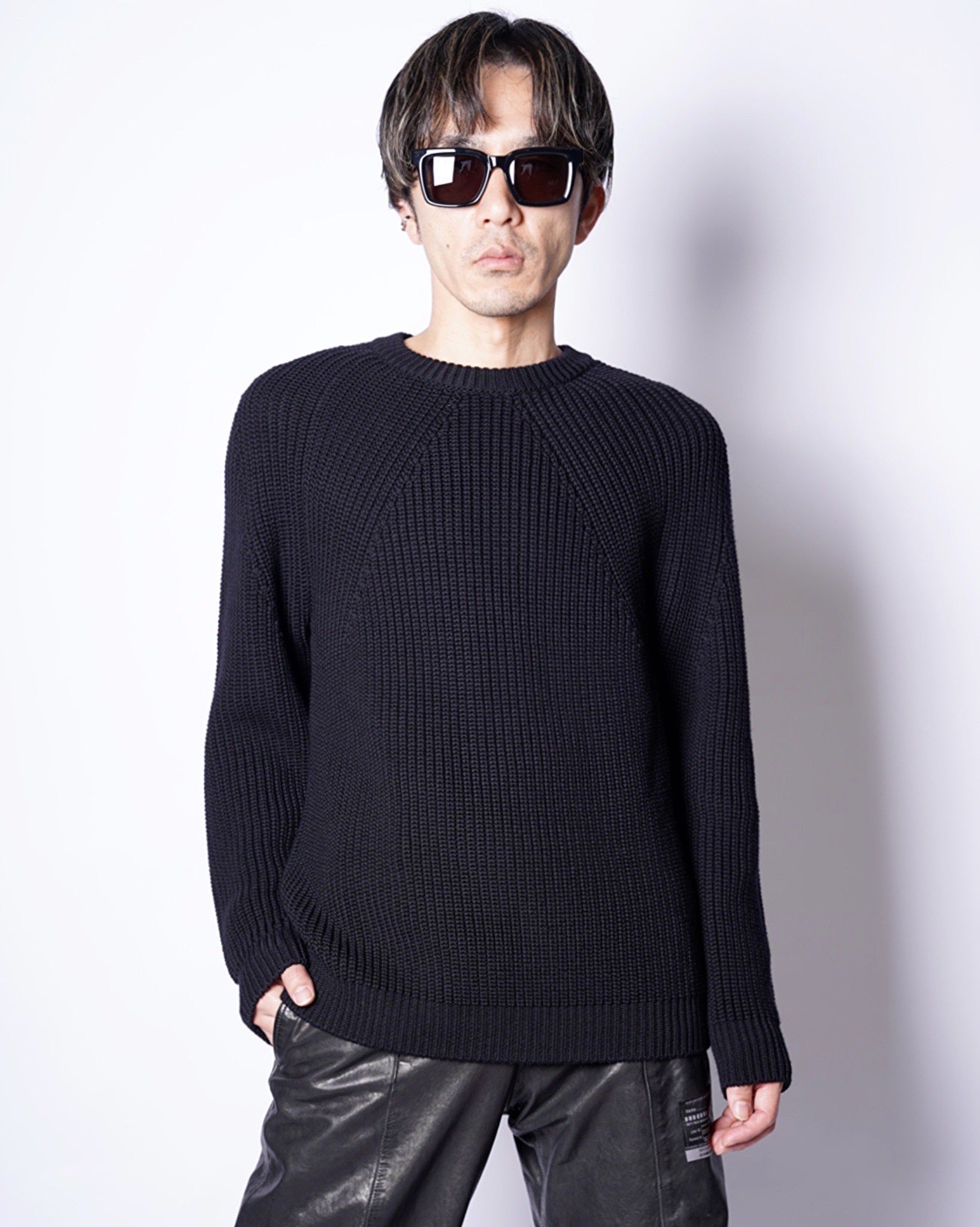 ・ベーシックなスタイルのクルーネックでありながら、中央から流れる畔目の模様がアイキャッチなアイテムです。
