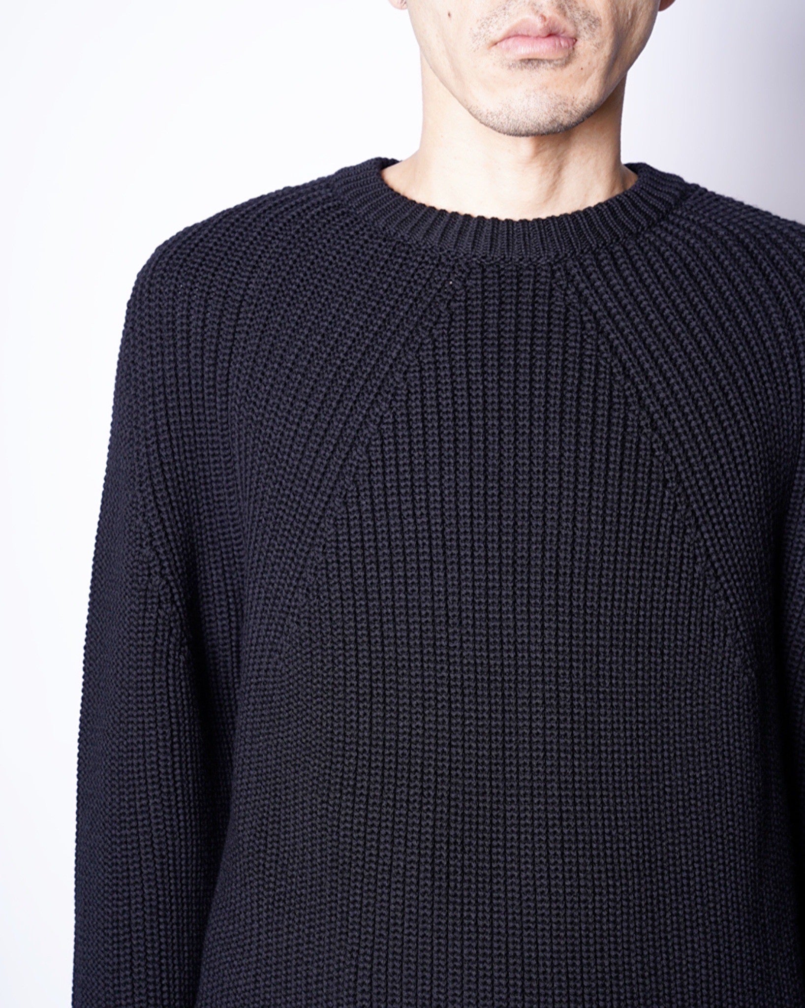 ・BATONERのブランドデビューからリリースされ続ける、まさにシグネチャーという名にふさわしい名作、畔編みクルーネックセーター。
