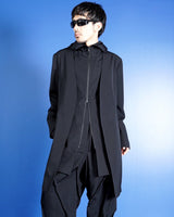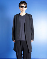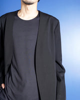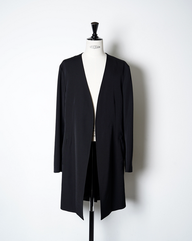 ・ボタンレスながらもフロントがだらしなく開かない造りが特徴となっており、ジャケットらしい端正な印象を残しています。