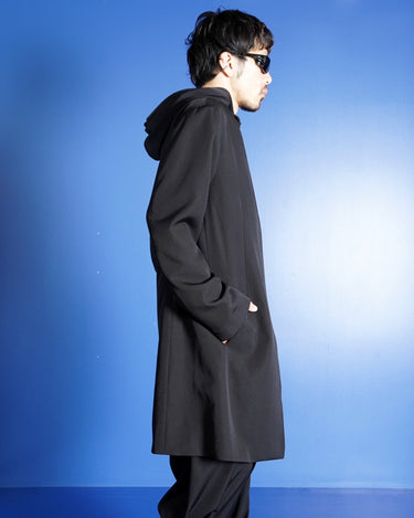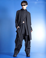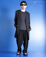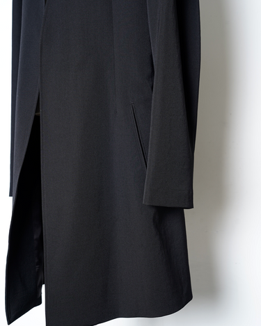 ・ウールギャバジンらしいマットで落ち着きのあるクリーンな表情を持ちながらも、非常にドレーピーな生地の揺れ感がYohji Yamamotoのデザインの魅力を一層引き立てています。