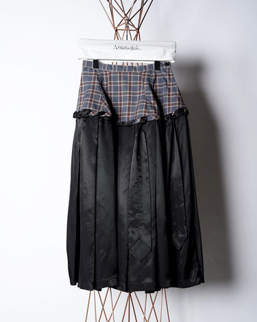 WOOL CHECK SATIN SKIRT