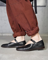 ・フェミニンな意匠のシューズながら、スクウェアトゥにしたりコバのステッチを太くするなど程よい無骨さを加えることでしっかりとメンズライクな仕上がりです。