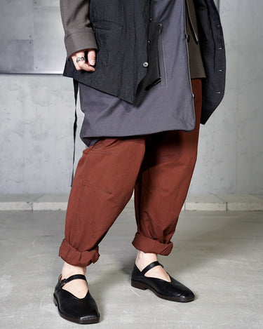 ・かかとを踏みつぶして履いていただけるバブーシュ仕様も特徴的。