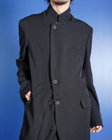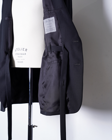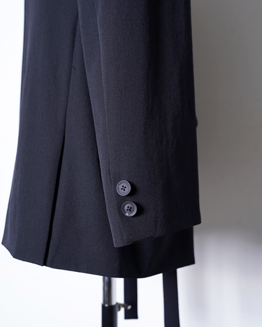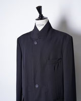 ・ウールギャバジンらしいマットで落ち着きのあるクリーンな表情を持ちながらも、非常にドレーピーな生地の揺れ感がYohji Yamamotoのデザインの魅力を一層引き立てています。