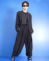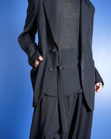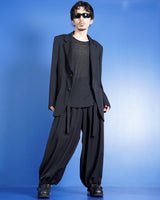 ・構築的過ぎない柔らかで癖のないフォルムながら、生地の落ち感も活かしたドレーピーな縦のラインを作ることで、Yohji Yamamotoらしさを強く演出。